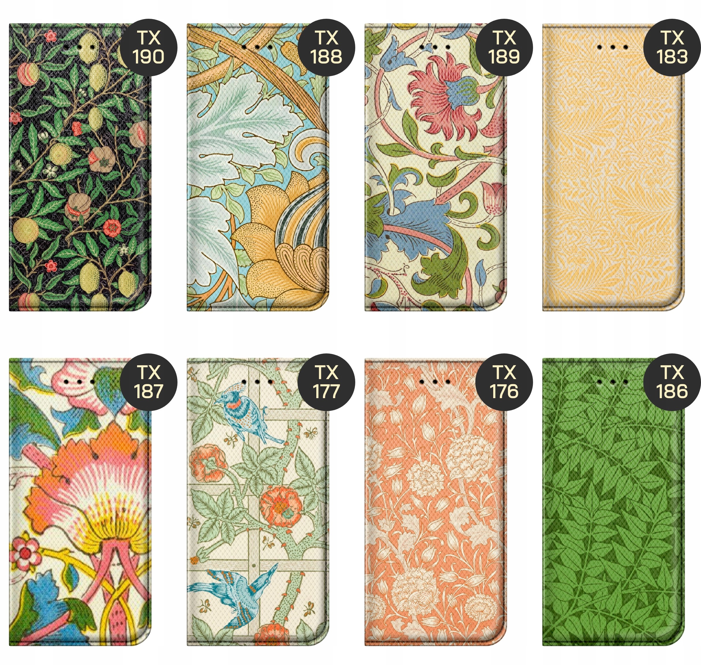 Вільям Морріс — англійський кресляр, художник і архітектор, якого вважають найвпливовішим дизайнером 19 століття. Його характерними рисами є арабески, S-flores, декоративні лінії та квіткові мотиви. Подивіться, яка графіка вам подобається, і ми надрукуємо її на вашому телефоні.