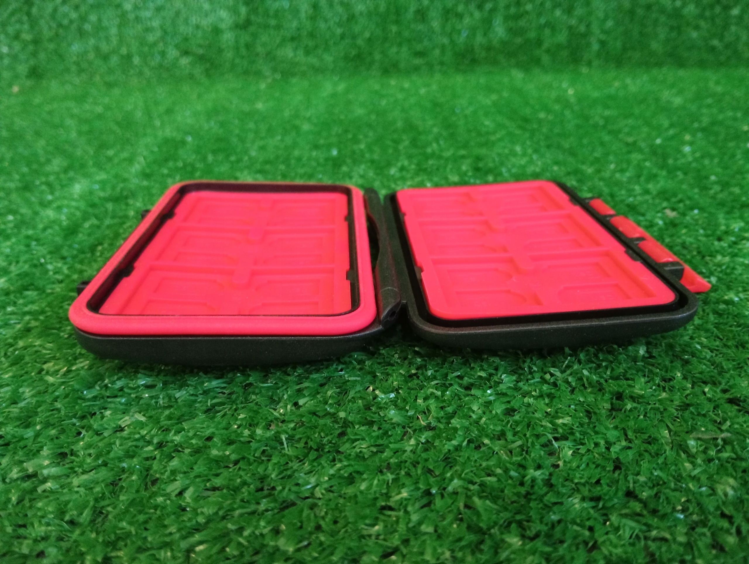 Оптимальний захист карт пам'яті - водонепроникний, пилонепроникний і ударостійкий. Ідеально адаптоване гумове покриття забезпечує надійне утримання картки всередині. Ідеальний кейс для зберігання і транспортування. Він може вмістити до 12 карт SD і 24 карт micro SD. Не підходить для дайвінгу