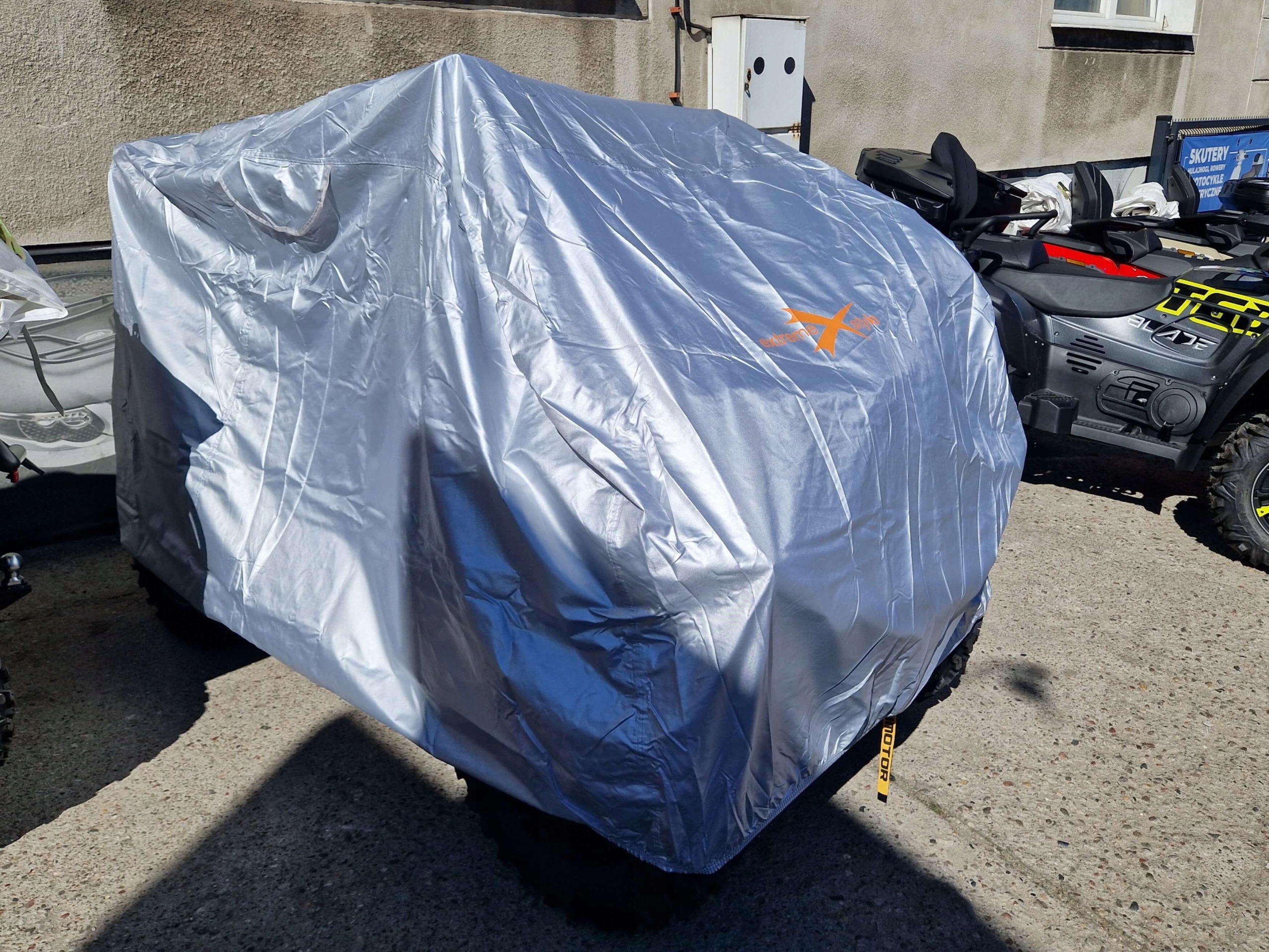 Водонепроникні кришки для квадратів/ATV за допомогою Extremeestyle® пришивається з високоякісного Oxford 420D матеріалу, виготовленого на 100% 100% поліестеру з вагою 130 г/м2, стійким до температури до 125 ° С. сильний вітер. Крім того, склеєні внутрішні шви збільшують напругу, захищаючи транспортний засіб від вологи та бруду.