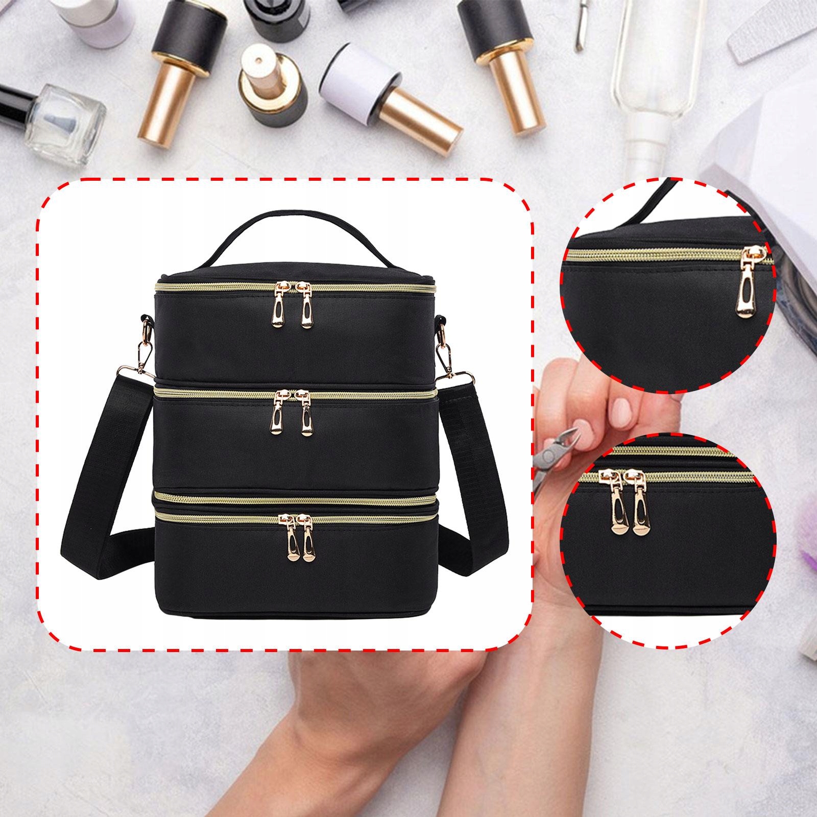 [Просторий тришаровий дизайн]: чохол для лаку для нігтів має унікальний тришаровий дизайн із великим простором для розміщення до 60 пляшечок. Верхній шар забезпечує велике відділення для зберігання лампи для нігтів і містить невеликі кишеньки для зберігання різних інструментів для нігтів, таких як nail