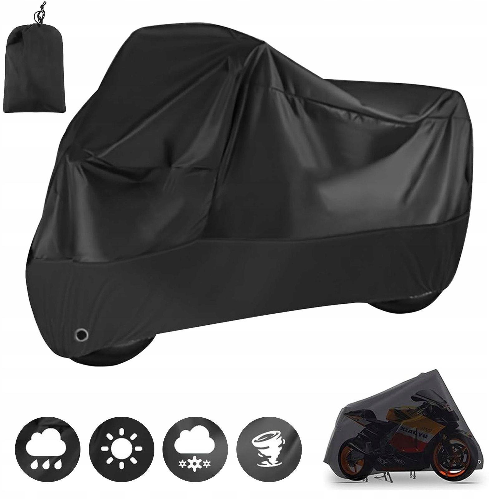 Чохол для мотоцикла, універсальний, стійкий до атмосферних впливів із поліестеру, чорний із сумкою для зберігання