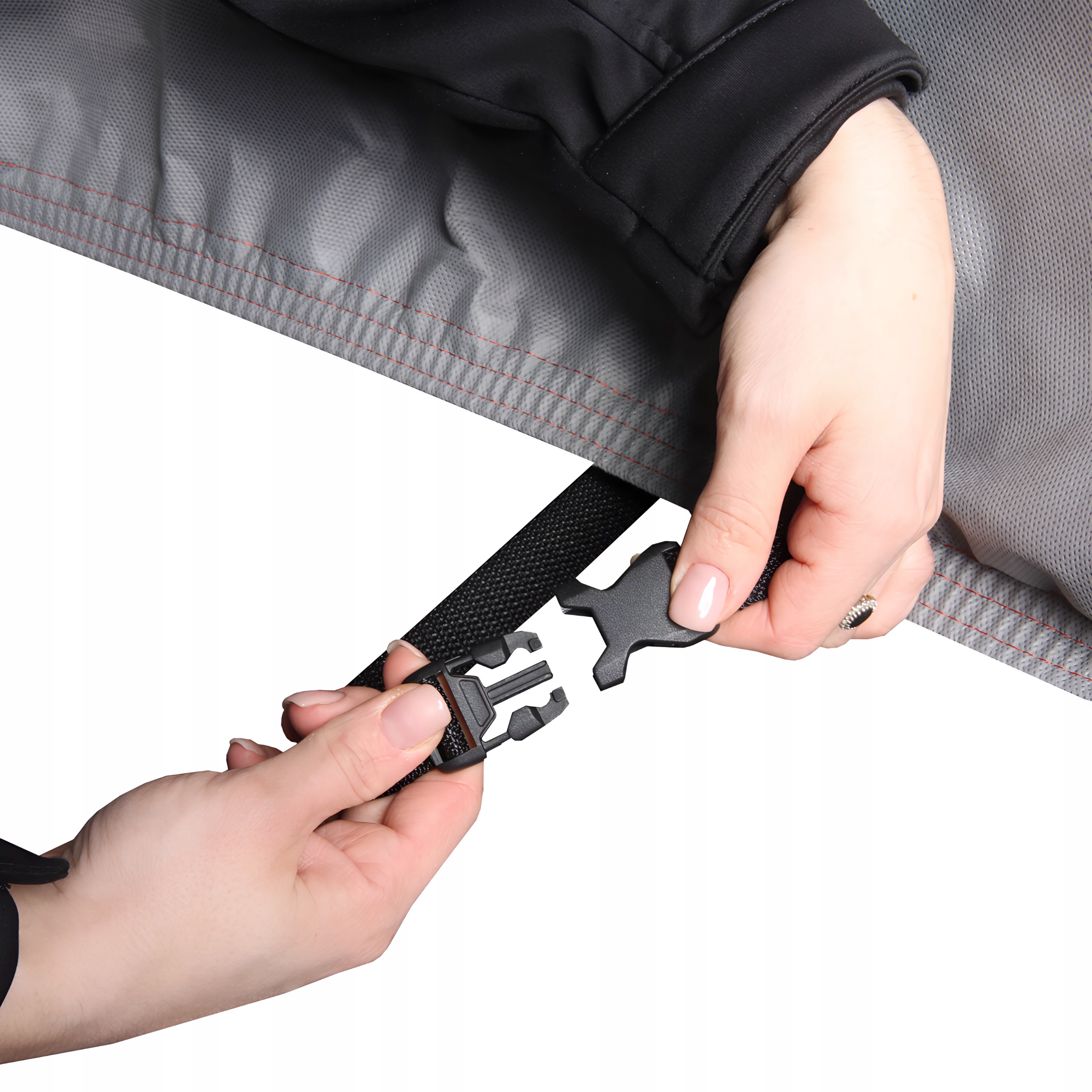 ✔️ Стабілізуючі елементи: стягуюча гума по нижньому краю та кріпильний ремінь посередині - покращують зчеплення та захищають від ковзання під час вітру.