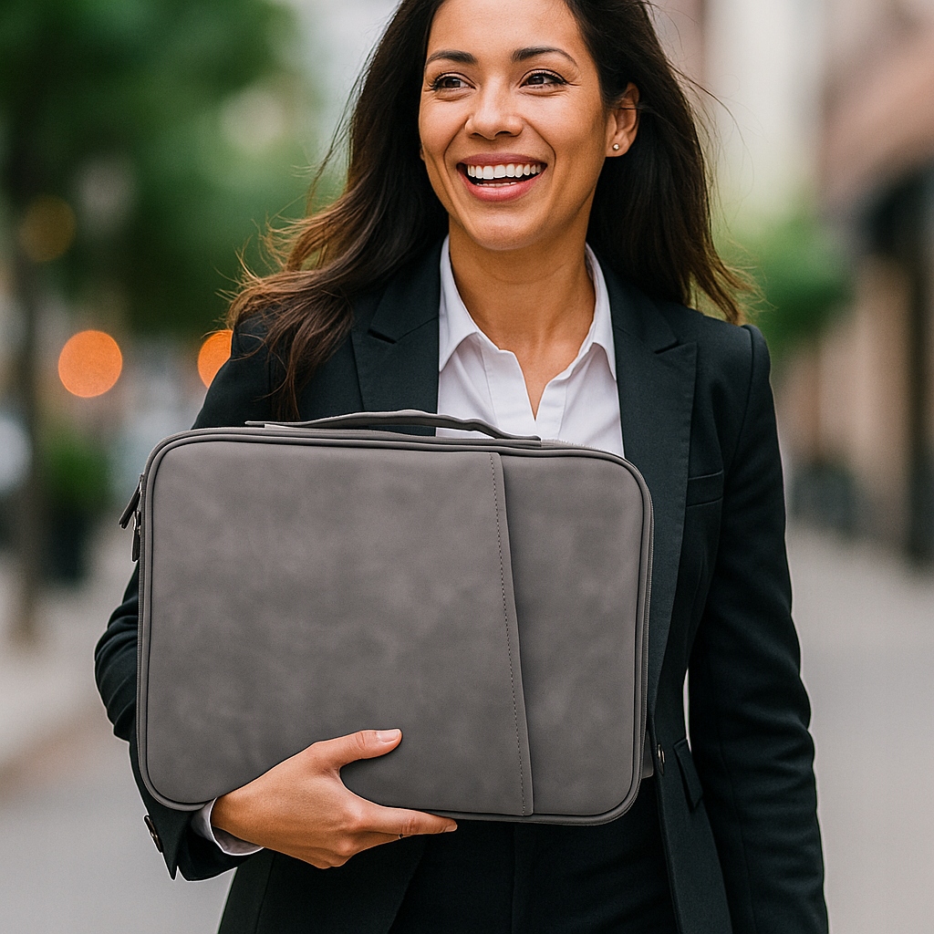Скільки аксесуарів ви носите з собою на роботу щодня? Планшет, телефон, навушники, блок живлення, блокнот, ручки, календар, гаманець... Тепер ви можете зручно носити всі ці предмети в одному акуратному та міцному футлярі.
