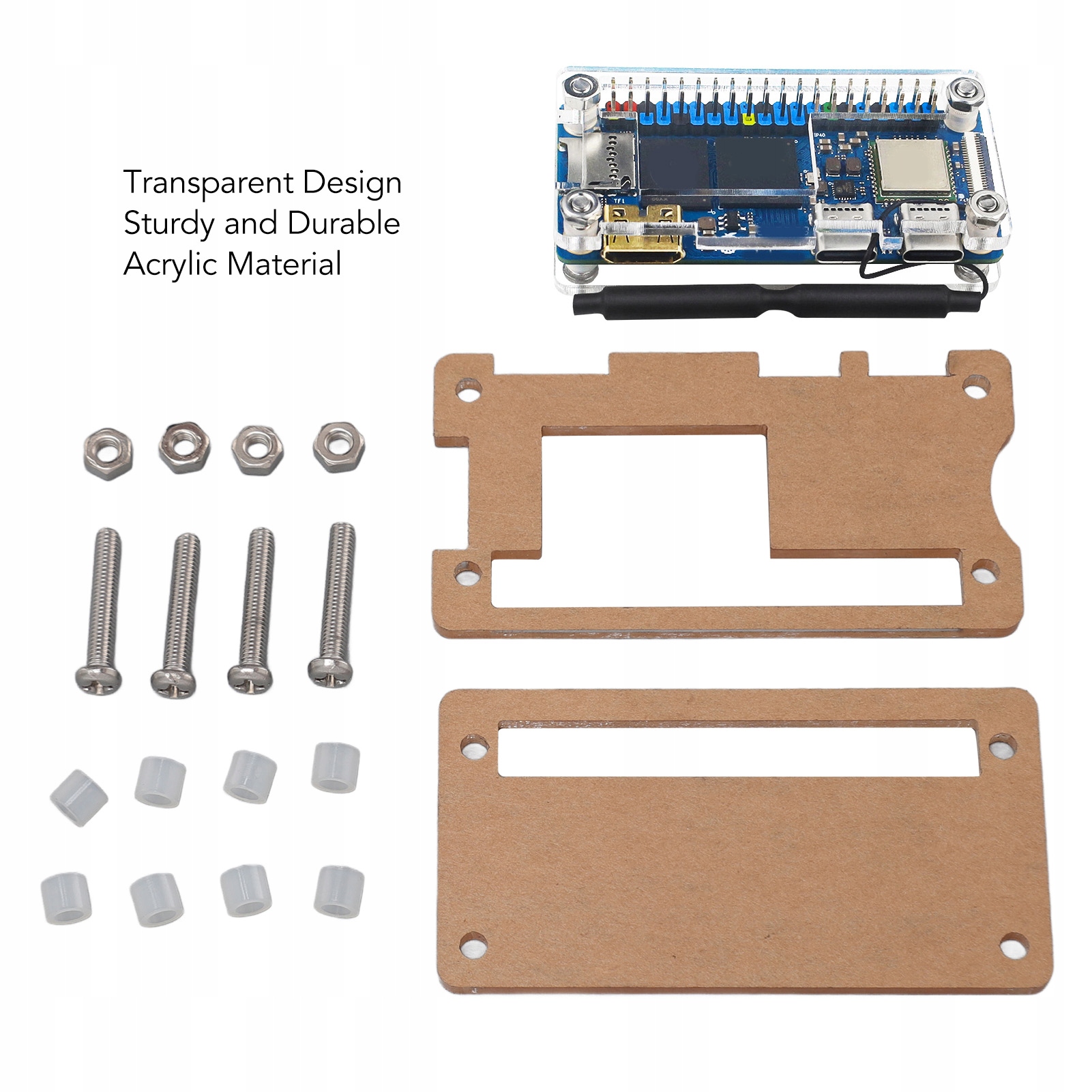 2. Прозорий акриловий дизайн: цей футляр для розробки Orange Pi Zero 2W має прозорий дизайн, який ефективно захищає плату Orange Pi Zero 2W, демонструючи її прозорий дизайн.