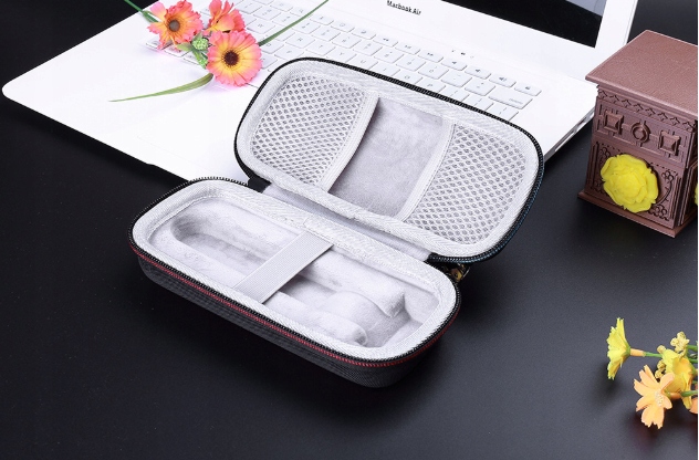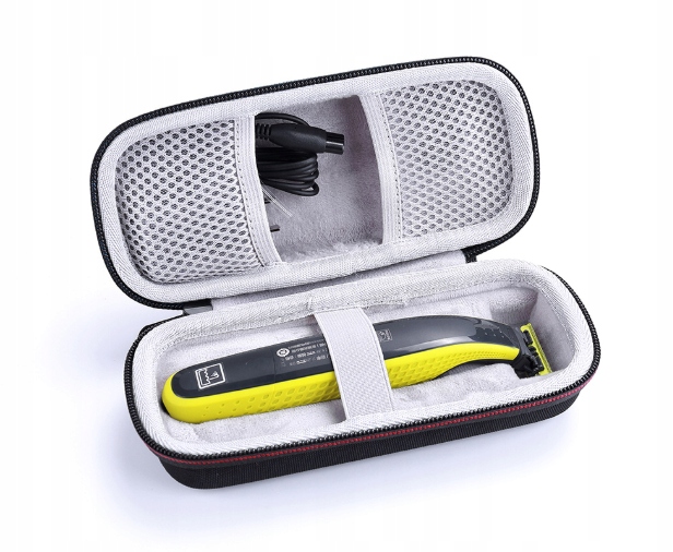 Обшитий м’яким і приємним на дотик матеріалом, він захищає пристрій від пошкоджень і ударів. Вшита еластична стрічка запобігає випаданню. Крім того, дві еластичні сітчасті кишені ідеально підходять для зберігання зарядного пристрою та лез.