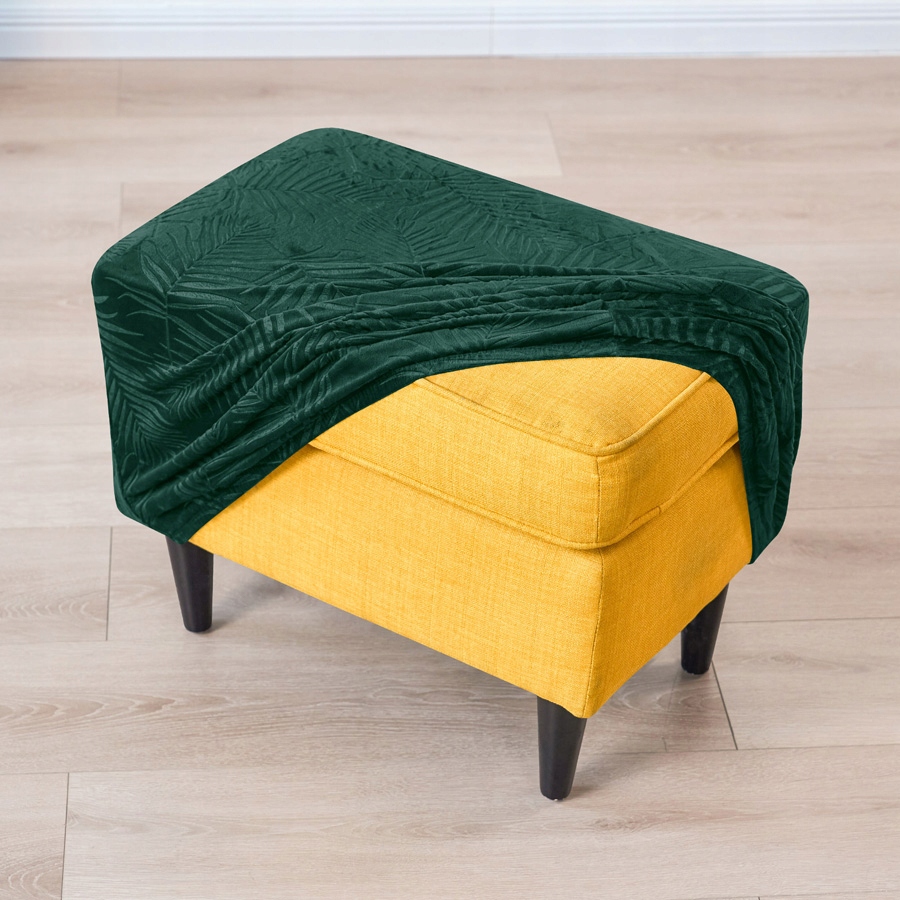 ЧОХОЛ ДЛЯ ПІДНІЖКИ ПУФ візерунок ТИСНЕННЯ ЛИСТЯ ВЕЛЮРОВА ПЛЯШКА ЗЕЛЕНИЙ