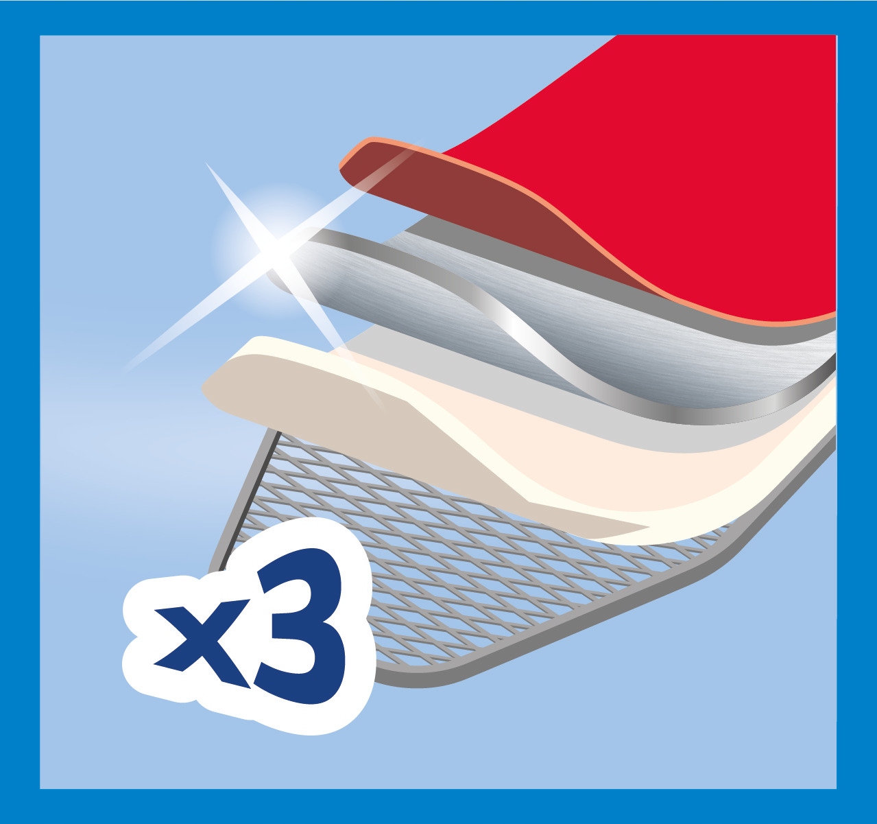 - Три шари з високоякісних матеріалів (бавовна з металізованим шаром, поролон, губка)