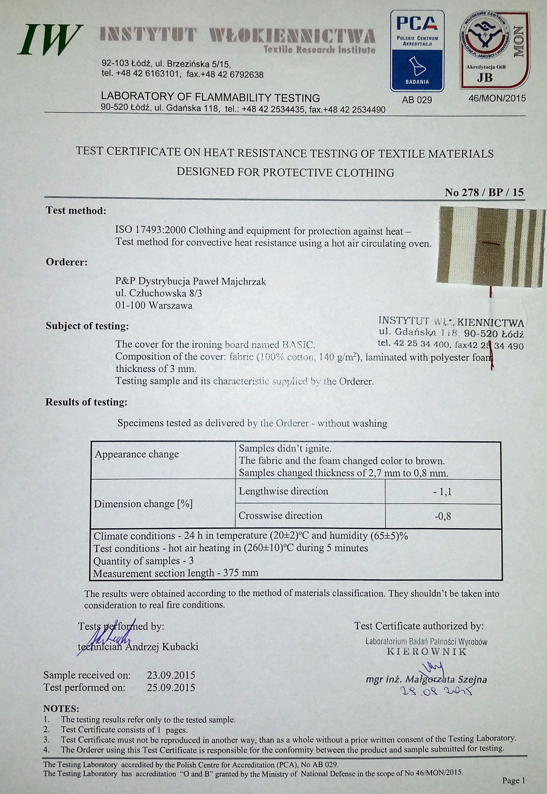 - сертифікат незаймистості при контакті з праскою (перевірено на стійкість до 260C)