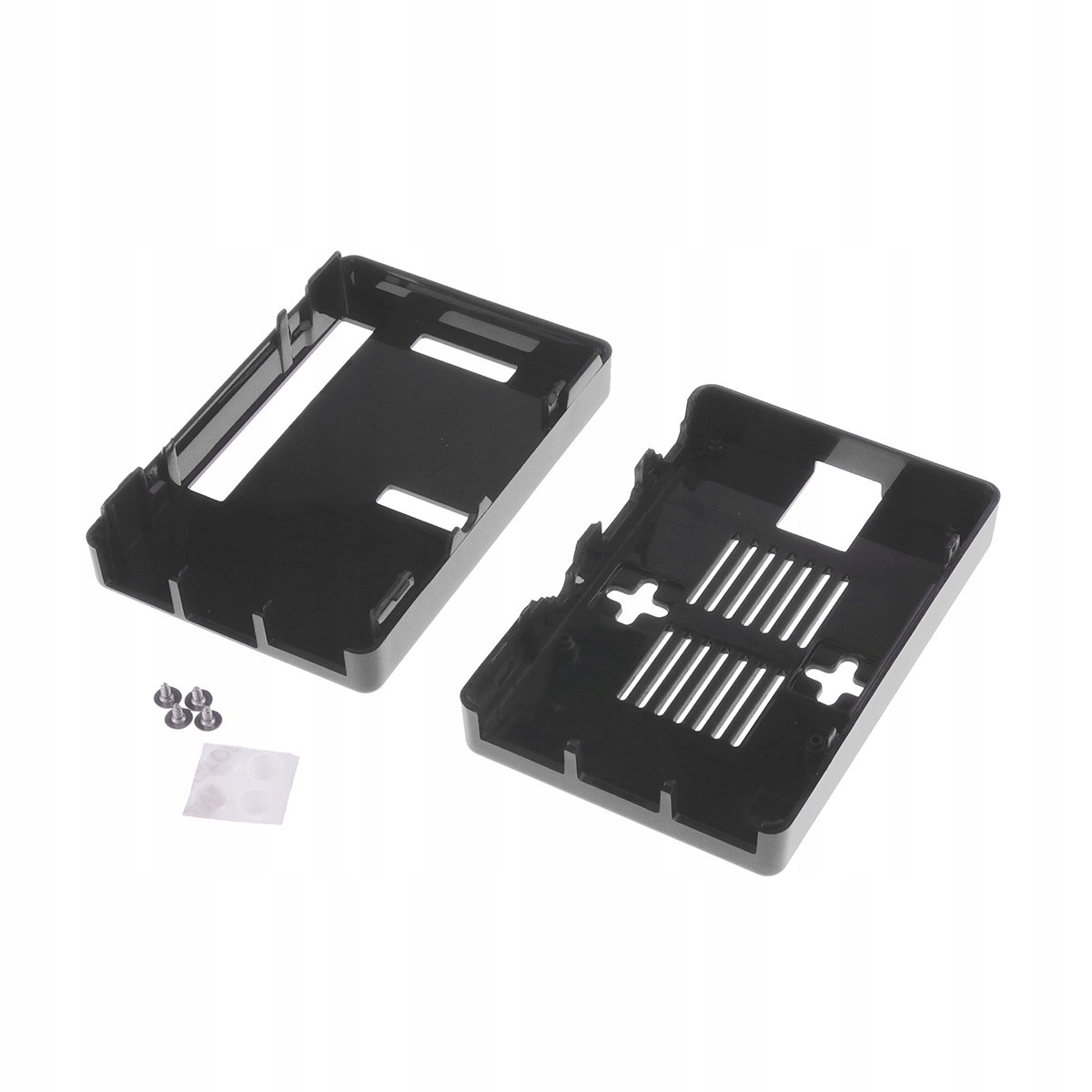 Чорний корпус із високоякісного ABS-пластику для Raspberry Pi 3 моделі B+, Raspberry Pi комп’ютери 3 модель B, Raspberry Pi 2 модель B і Raspberry Pi 1 модель B+. Корпус закривається на засувки. Він має отвори для всіх стандартних роз’ємів Raspberry Pi: аудіо/відео, USB, Ethernet, живлення та карти пам’яті.