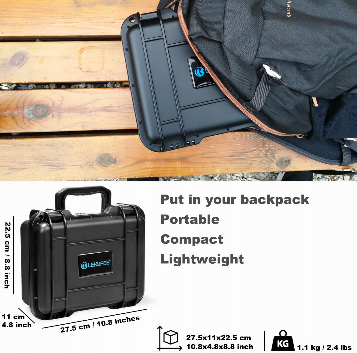 - 【Легкий і компактний】 Вага: 2,4 фунта (1,1 кг), Зовнішні розміри (ДxШxВ): 10,8 x 4,3 x 8,8 дюймів (27,5 x 11). х 22,5 см). Легко поміщається у ваш рюкзак або сумочку, що закривається на замок, захищаючи комплект камери Gopro Hero 11 у будь-який час. Цей міцний футляр ідеально підходить для дому/роботи/подорожі