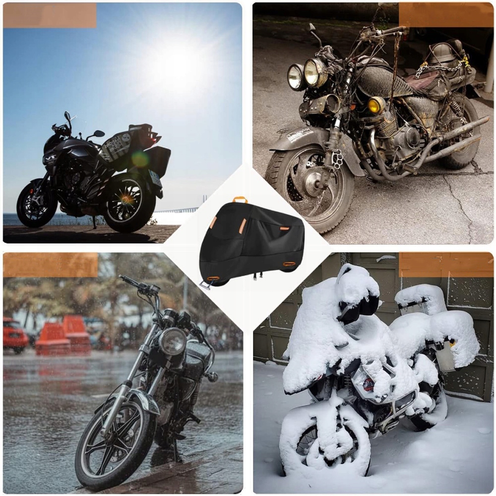 ремінь: Подвійні шви роблять кришку мотоцикла більш міцним. Водонепроникна структура пояса робить захисну кришку мотоцикла більш водонепроникною і не просочується.