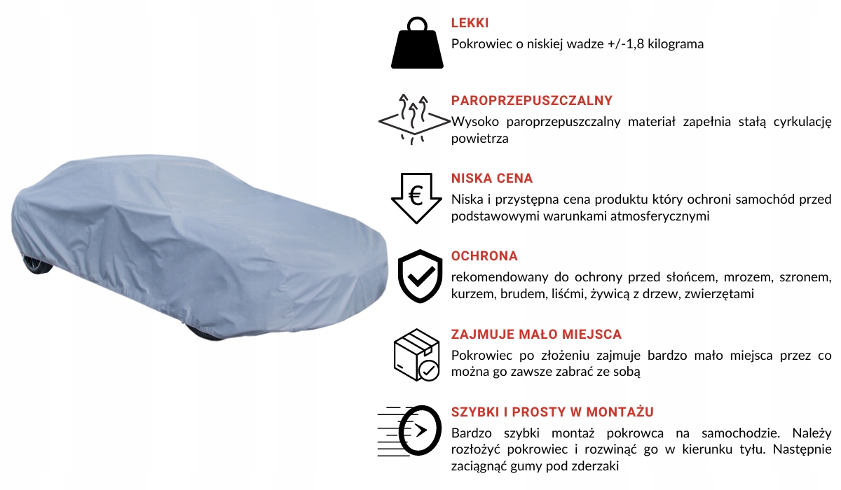 Чохол завершується міцною еластичною стрічкою, яка утримує брезент по всьому периметру автомобіля.