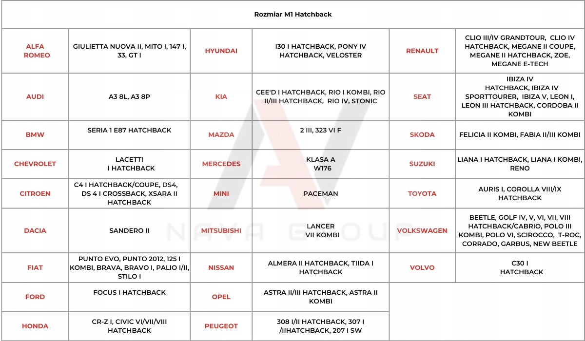 Розмір кришки: хетчбек M1