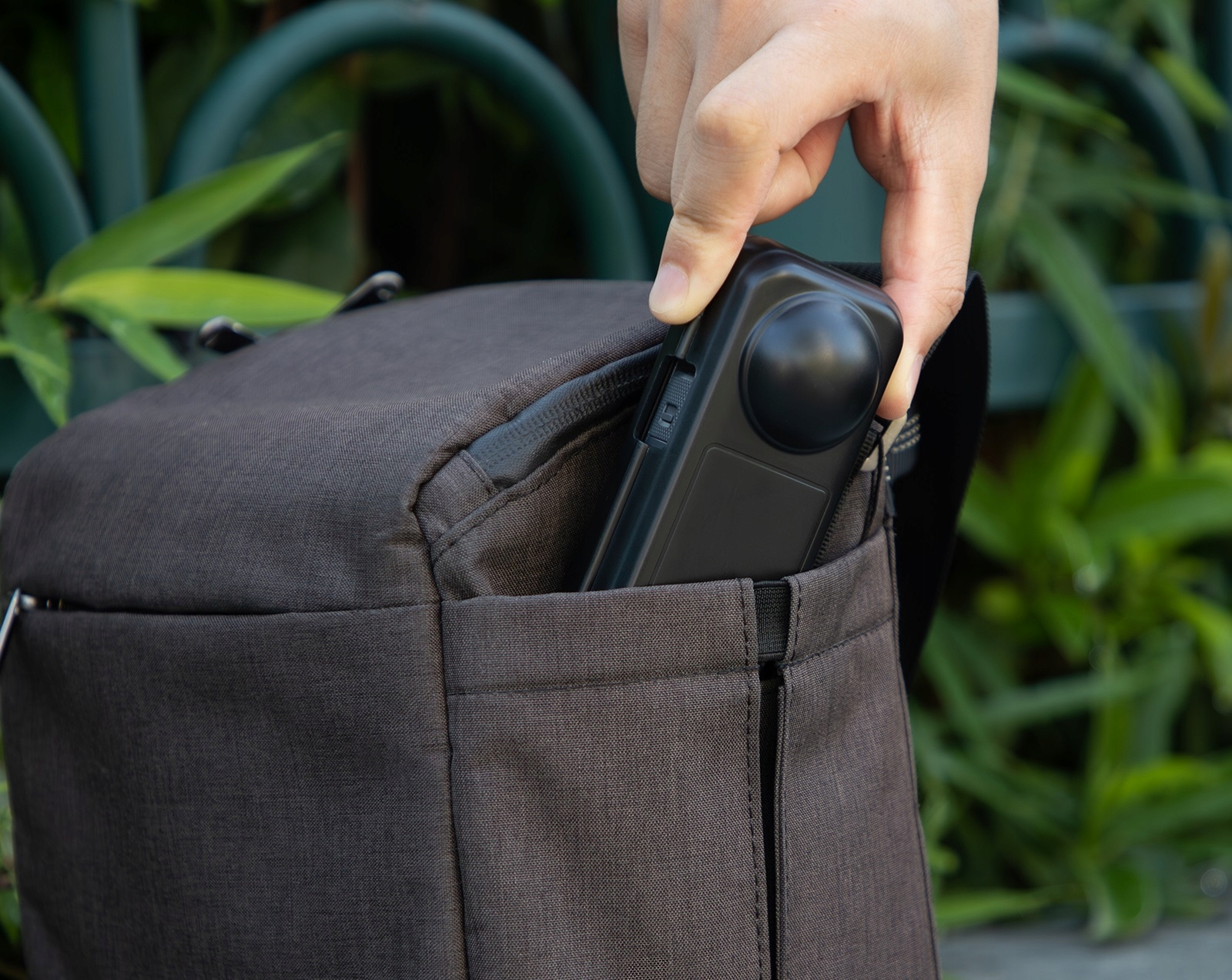Завдяки знімній засувці камеру Insta360 X4 можна дуже швидко встановити в раму.