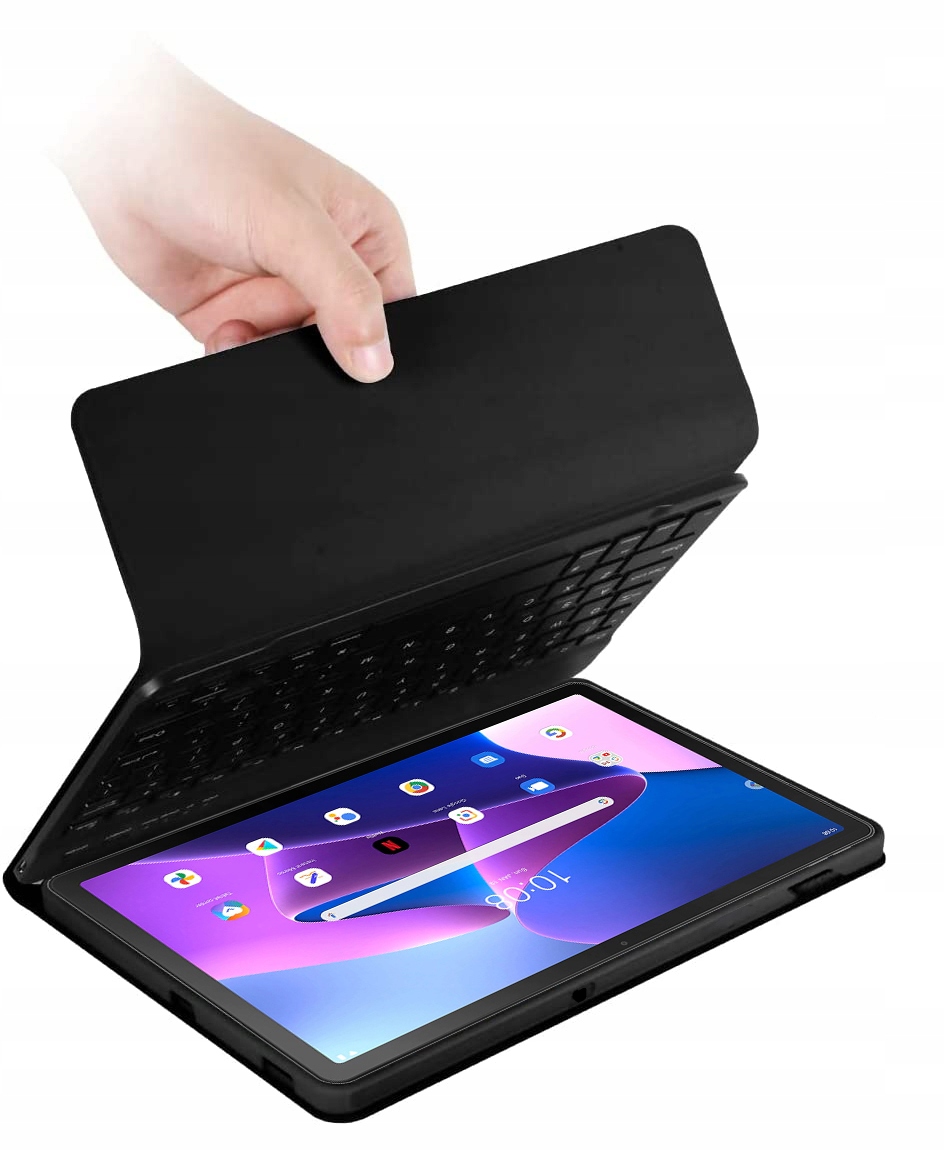 Спеціальний чохол для моделі 10,6" Lenovo Tab M10 Plus Gen 3. Моделі: TB128XU TB125FU.Виготовлений з високоякісного пластику, м'який на дотик. Планшет захищений окремий гумовий чохол Має естетичну магнітну застібку, яка додатково захищена гумовим чохлом Усі слоти та кнопки планшета відкриті Бездротова Bluetooth клавіатура характеризується дуже високою якістю Клавіатура може використовувати польські символи Корпус має вбудовані магніти, завдяки яким клавіатура надійно тримається в футлярі.