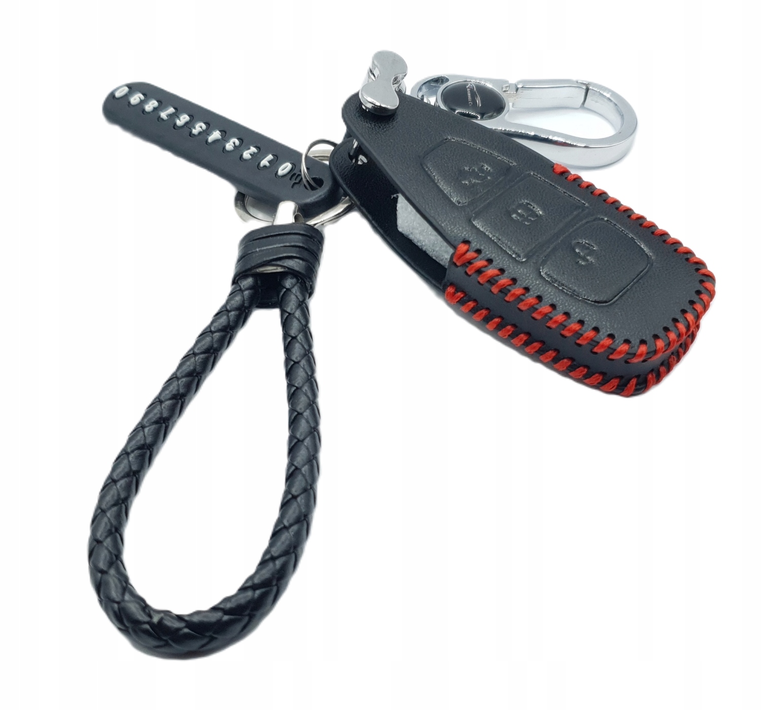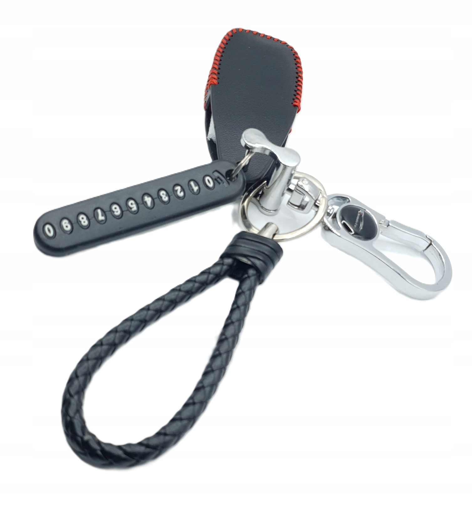 Пропозиція включає футляр, чохол із шкіри з поліуретановою підкладкою з ремінцем, карабіном і матрицею номера телефону для розумного безключового ключа для моделі: