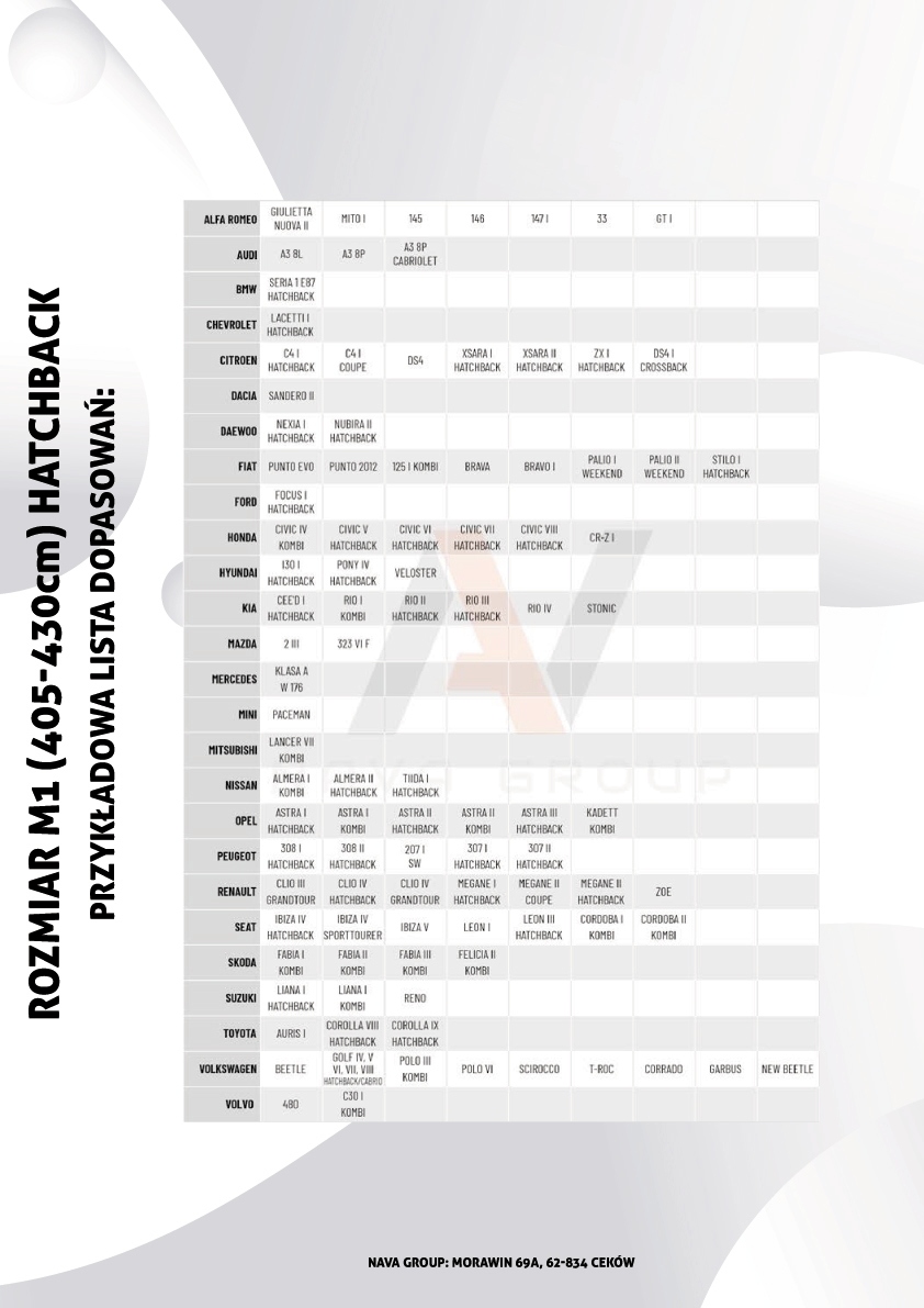 Розмір кришки: хетчбек M1