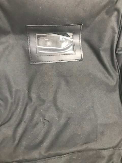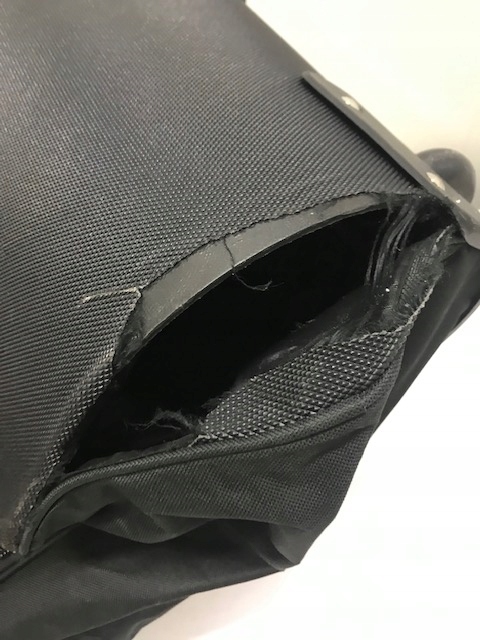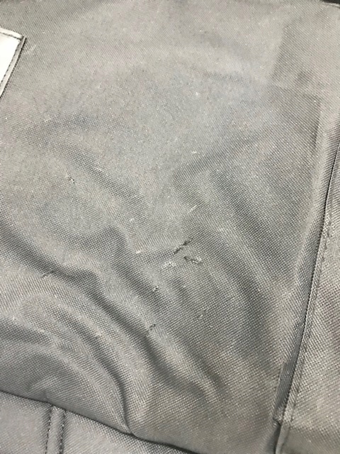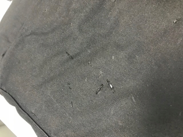 МАЄ РОЗРІЗАНИЙ МАТЕРІАЛ ВЕРХУ ЗАДНЬОЇ ЧАСТИНИ ТА РОЗІРВАНИЙ ПО КРАЮ ОСНОВИ ВНИЗУ