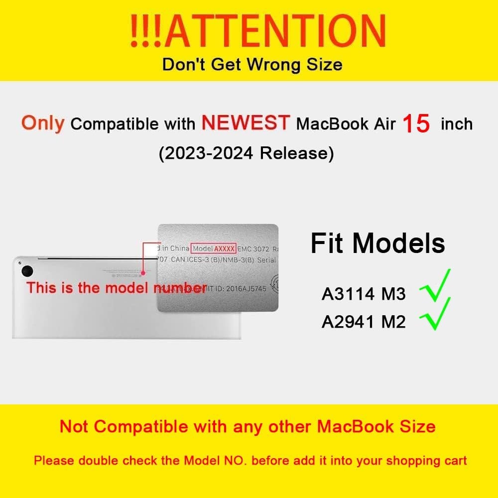 - 【Попередження】Захист для Mac book Air M2. Чохол 2023 призначений лише для моделі MacBook Air 15" A2941 (версія 2023). Він несумісний з іншими розмірами MacBook.