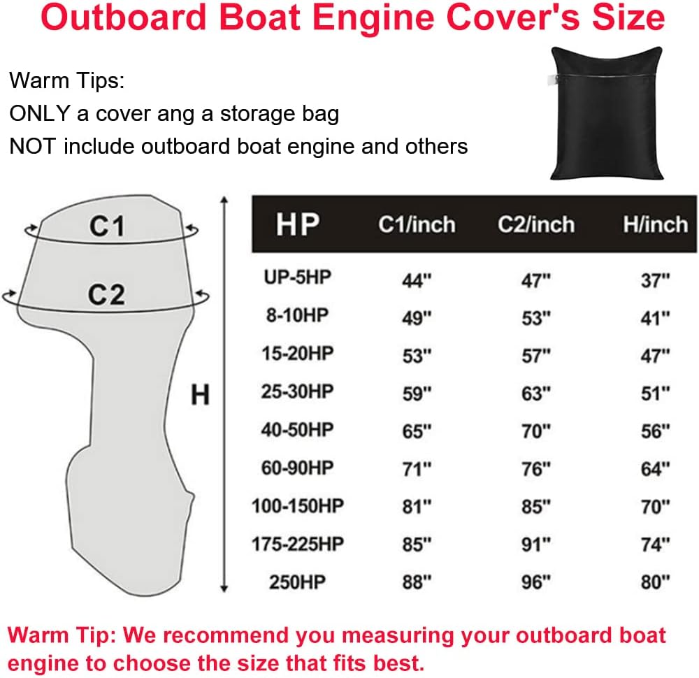 - МІЦНИЙ МАТЕРІАЛ Чохли для підвісного човнового мотора для зовнішнього використання виготовлені з міцної тканини 420D Oxford із сріблястим внутрішнім покриттям із поліестеру Ripstop, щоб захистити ваш двигун від пилу, сонячного світла, дощу та зовнішніх елементів для довговічності. довговічність.