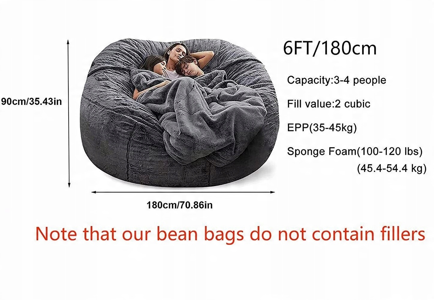 Потрібна кількість наповнювача: орієнтовно 50-80 кг губчастого поролону Залежно від щільності губки необхідна кількість наповнювача: приблизно 50 кг зерен EPS Екологічний зерна EPS діаметром 3-5 діаметрів або губка або PP бавовна