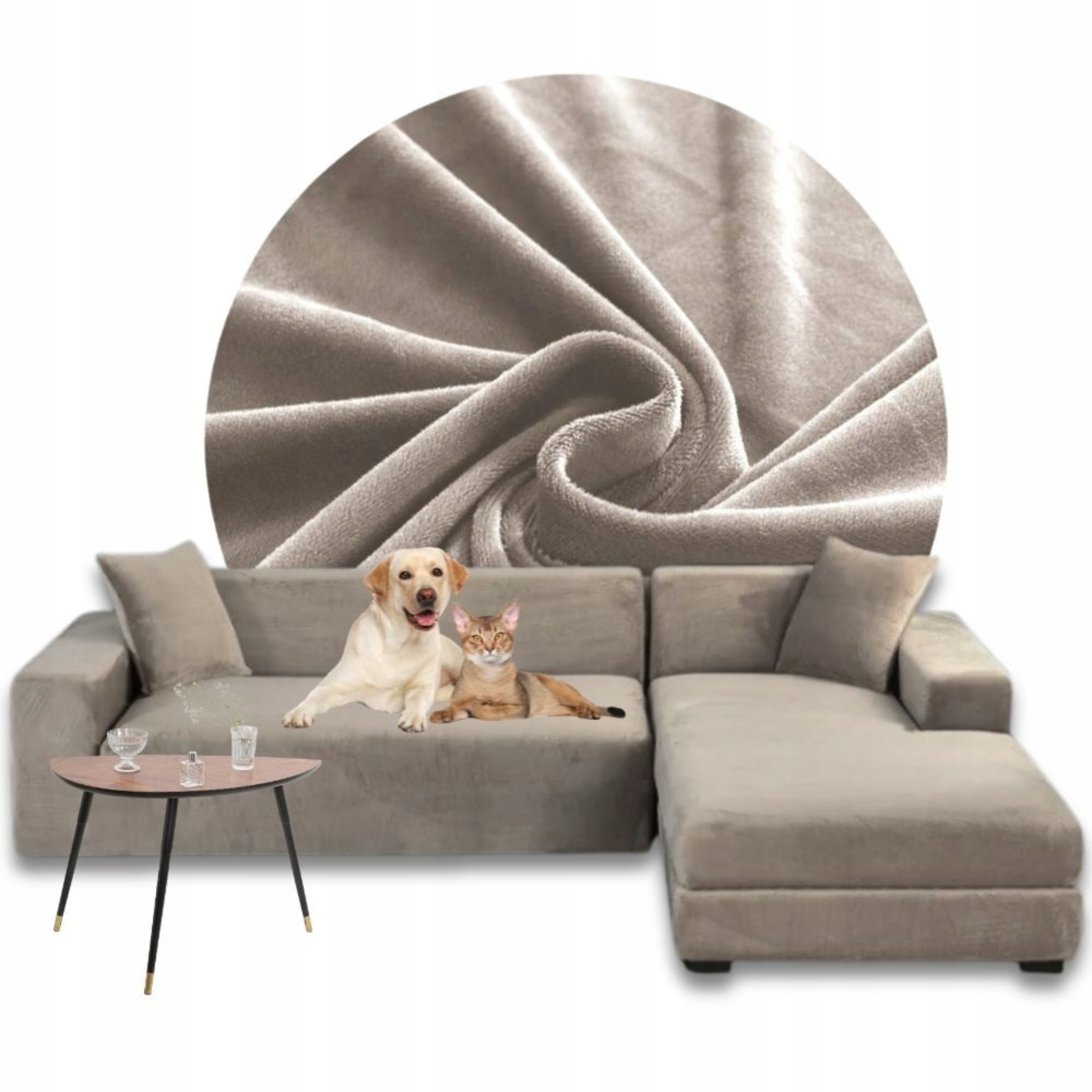 ЧОХОЛ НА КУТ ДИВАН ВЕЛЮР ПРЕМІУМ КЛАСУ ПЛЮШ ПРАВИЙ 3+3ОС БЕЖЕВИЙ
