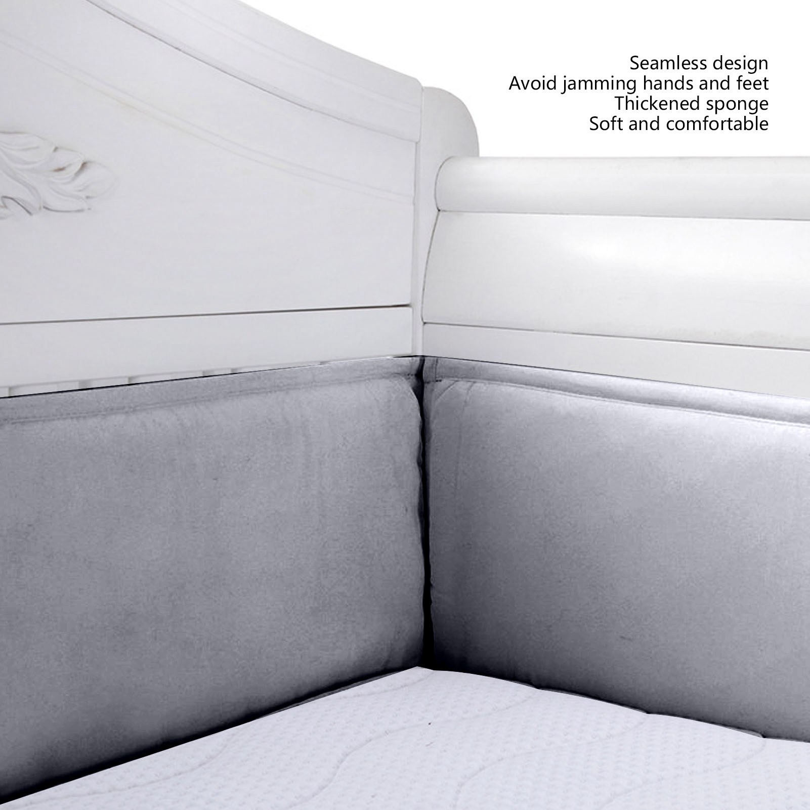 2. [Захист країв поручнів] Захист поручнів для ліжечка наповнений щільною тканиною, щоб захистити поручні від подряпин при прорізуванні зубів, забезпечуючи безпеку вашої дитини під час прорізування зубів.