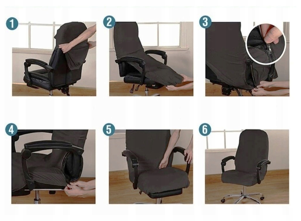 Чохол застібається на бічні блискавки з обох боків, а додаткові гумки та стрічки забезпечують краще прилягання чохла до крісла.