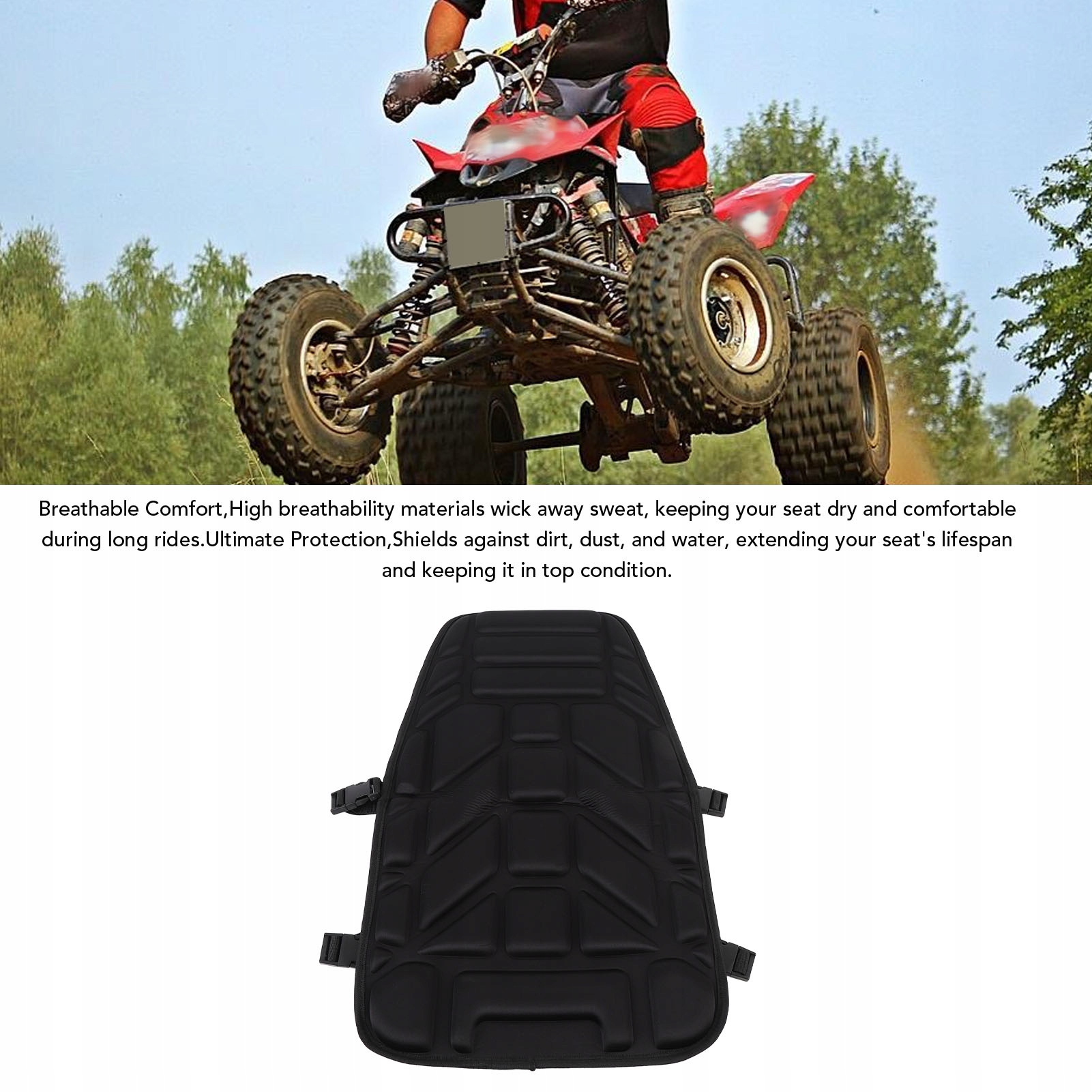 3. Поглинання ударів. Завдяки вбудованим амортизуючим матеріалам покриття сидіння квадроцикла ефективно пом’якшує удари та вібрацію, забезпечуючи більш стабільну та комфортну поїздку.