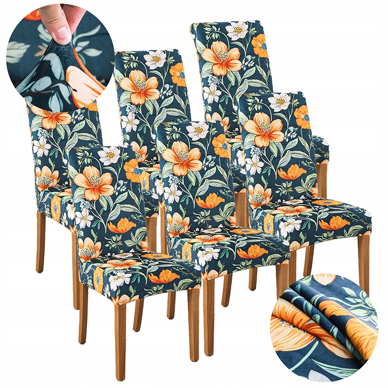 Чохол на стілець GREEN з малюнком помаранчевих КВІТІВ НАБІР 6 КВІТОК
