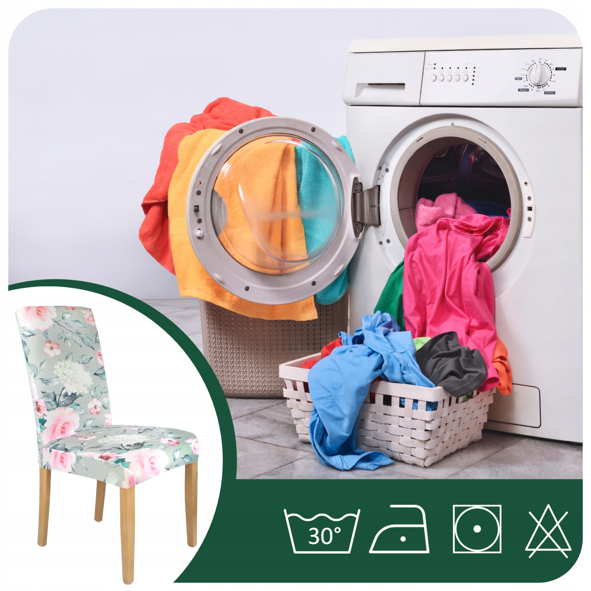Обкладинка можна промивати в пральній машині при 30 градусах. . Після нанесення його на стілець просто покатайтеся на руку, щоб вона працювала добре. Якщо хтось думає, що їм потрібно прасувати, ми рекомендуємо низьку температуру.