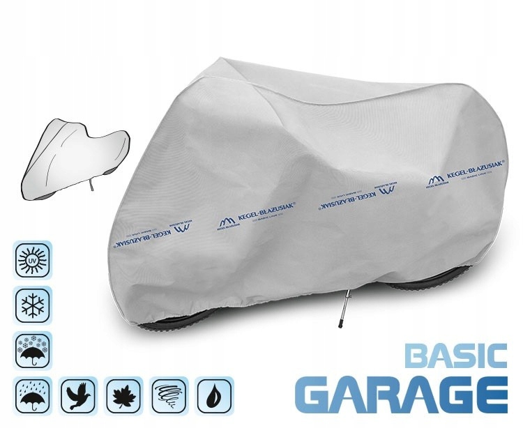 Целирічний водонепроникний чохол для захисту велосипеда, який зберігається на вулиці, від несприятливого впливу навколишнього середовища. Завдяки особливій конструкції під час дощу вода стікає по кришці, не проникаючи під кришку, а водяна пара виводиться назовні. Він захищає велосипед від дощу, снігу, морозу та сонячного світла (шкідливого ультрафіолету), а також забруднюючих речовин, таких як пил, пташиний послід і деревний сік. Обмежує корозію та старіння пластикових елементів, захищає від вицвітання та матування фарби та хромованих елементів. Покриття повністю стійке до будь-яких погодних умов. Він кріпиться за допомогою еластичного шнурка, що дозволяє легко одягати та знімати. Додатковий замок під велосипедом захищає чохол від зриву вітром. Також підходить для використання всередині приміщень.