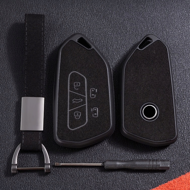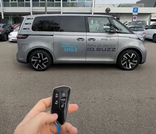 Пропозиція включає новий чохол, чохол для версії безключового ключа SMART (безконтактний запуск автомобіля) з гнучкого матеріалу TPU та чорної замші разом із ремінцем для 5-кнопкових моделей ID.BUZZ.