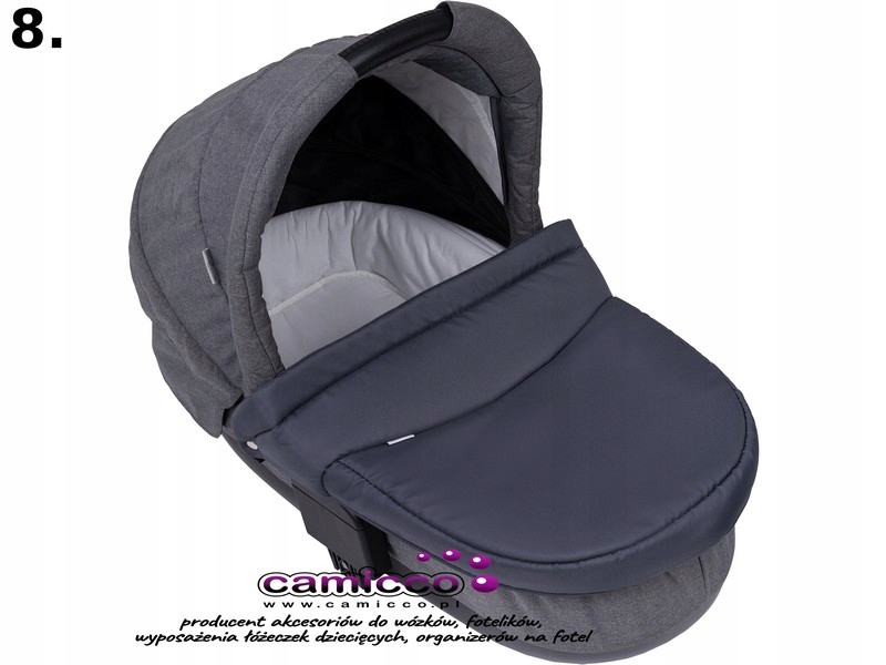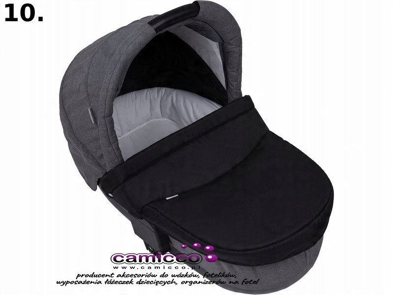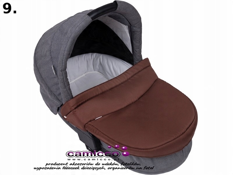 Універсальний чохол виготовлений з просоченого матеріалу, який використовується для виробництва дитячих колясок, всередині він наповнений поролоном, який надає жорсткість, завдяки чому чохол ідеально підходить до будь-якої гондоли, дно оброблене чорною підкладкою