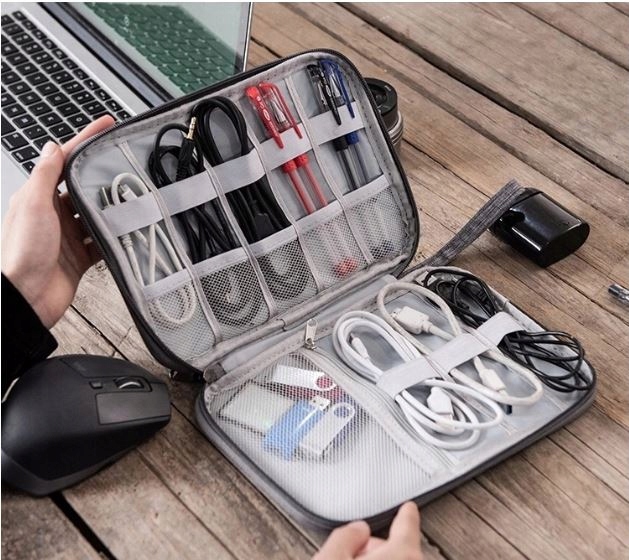 Легкий, зручний і зручний, чудово виготовлений і міцний чохол для ваших речей (кабелів, карток, флешок тощо) з додатковою закритою сітчастою кишенею для різноманітних корисних дрібниць.