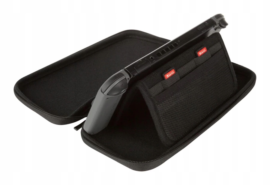 Візьміть свій Nintendo Switch - OLED або Nintendo Switch у дорогу з цим м’яким, компактним чохлом, створеним для вашої консолі. Всередині ви знайдете повстяну підкладку та вбудовану ігрову підставку з місцем для п’яти гральних карт і маленькою сітчастою кишенею. Цей портативний футляр дає вам свободу грати з Nintendo Switch у дорозі.