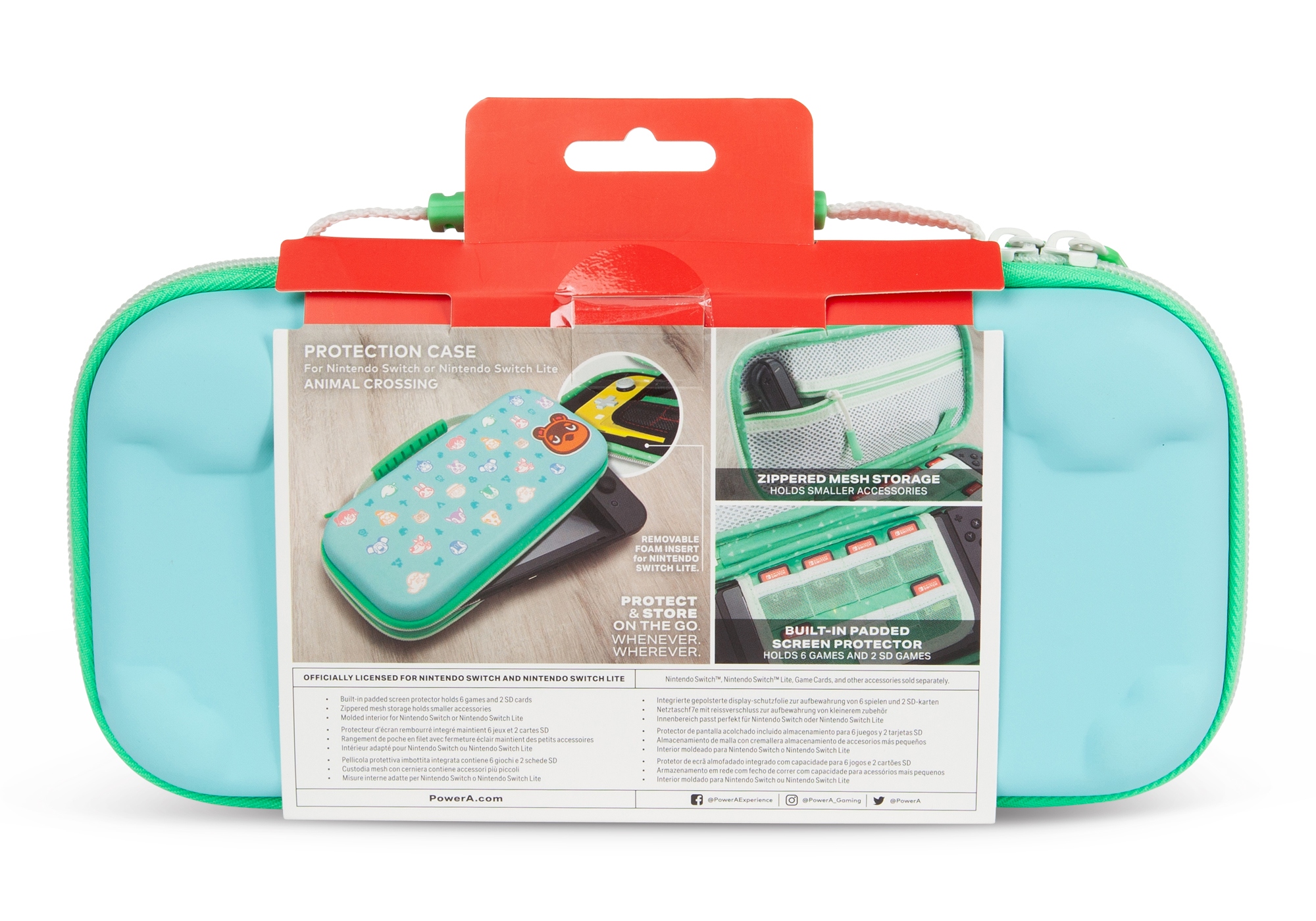 Візьміть свою консоль Nintendo Switch або Nintendo Switch Lite та ігри в дорозі з футляром для консолі Animal Crossing від PowerA. Усередині цього чохла ви знайдете повстяну підкладку, захисну кришку екрана з місцем для шести гральних карт і кишеню на блискавці для дрібних аксесуарів.