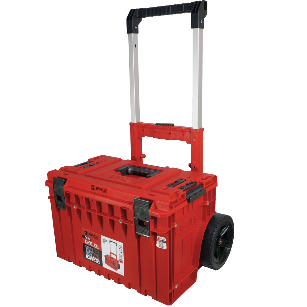Версія QBRICK SYSTEM CART ONE RED 2.0 була модернізована великими гумовими колесами (товщина гуми 6,5 мм; розмір коліс - 9 дюймів), встановленими на металеву вісь, що дозволяє безпечно транспортувати навіть складні набори. CART RED 2.0 їде дуже тихо та легко.