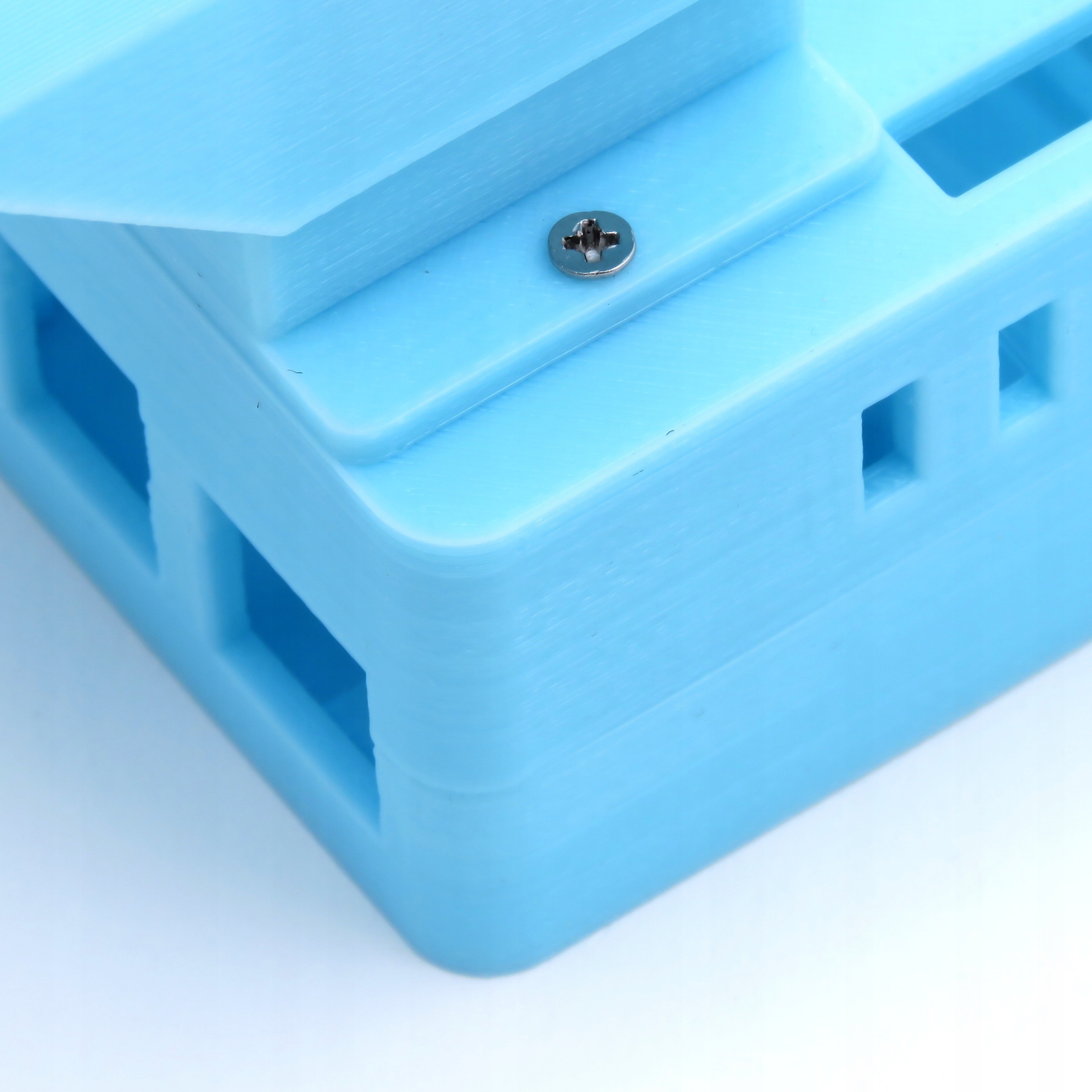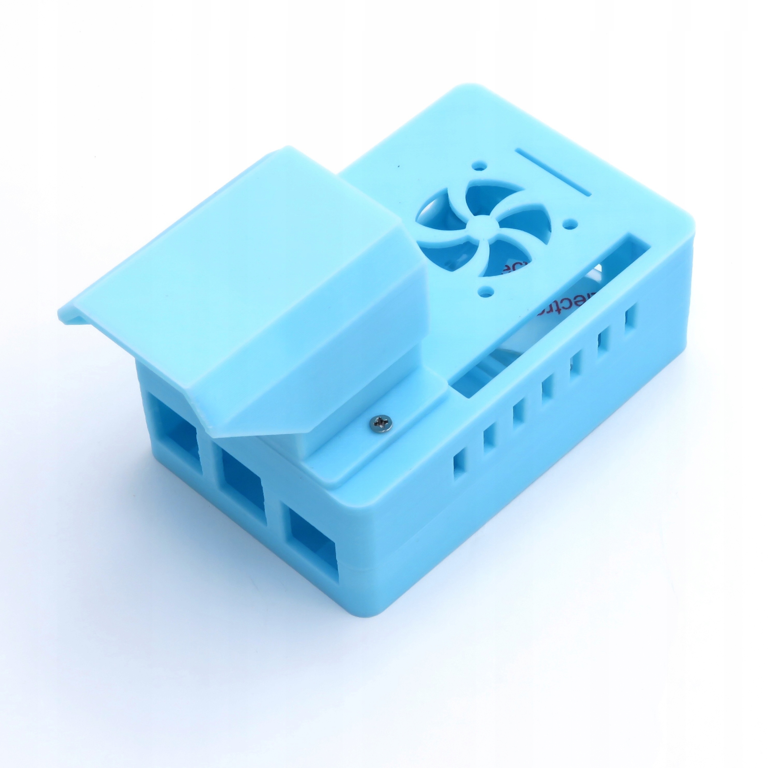Пластиковий корпус для міні-комп'ютера Raspberry Pi 4 model B синього кольору. Корпус захищає пристрій від пошкоджень і в той же час забезпечує повний доступ до всіх портів міні-комп'ютера. Він оснащений місцем для встановлення вентилятора та тримача камери (прикріплений гвинтами, тому його можна легко зняти).