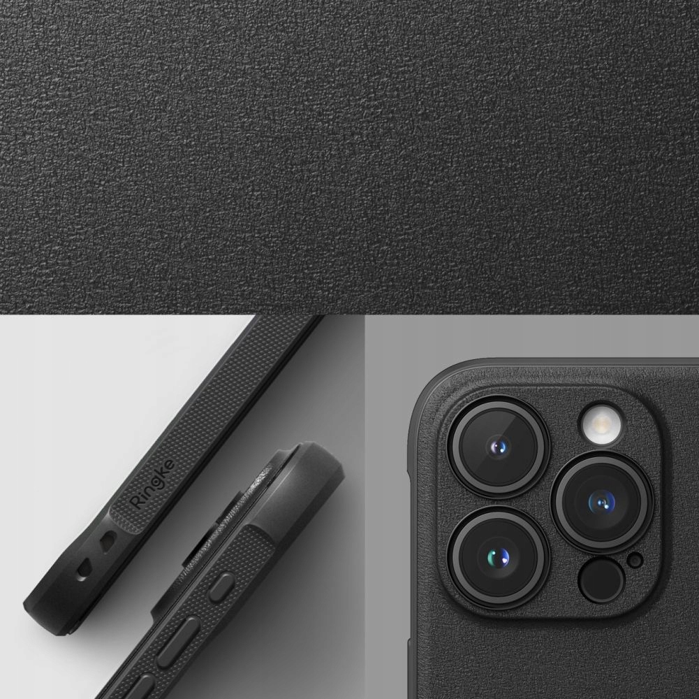 Чохол серії Onyx Magnetic від Ringke виготовлений із м’якого та міцного термопластику, додатково зміцненого по краях для найкращого захисту пристрою. Злегка піднята форма корпусу навколо камери та екрана захищає його від подряпин, піднімаючи телефон над рівною поверхнею. Має кришки для кнопок, вирізи для портів і шнурок.