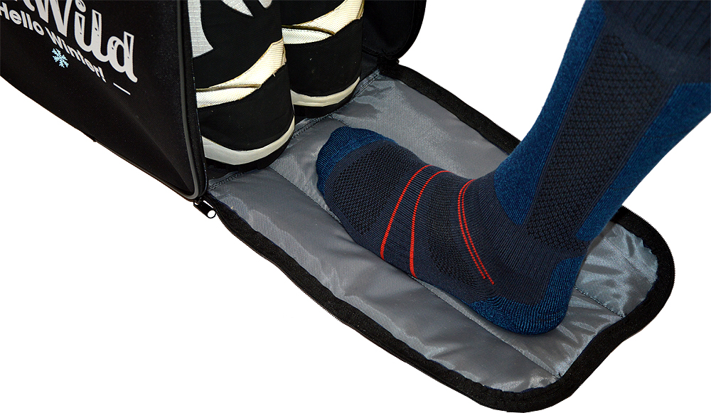 Відкритий клапан можна використовувати як килимок, що дозволяє зручно взувати лижні черевики на стоянці, не забруднивши шкарпетки.