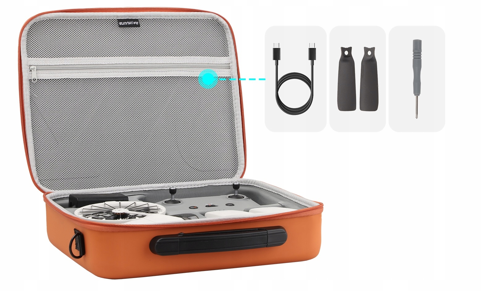 Інтер'єр був спеціально сформований для ідеального відповідності DJI Flip та його аксесуарів, забезпечуючи відмінну подушку, падіння проти падіння та стійкості до подряпин.