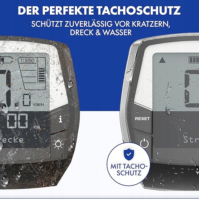 Висока якість і продуктивність- Захист екрана електричного велосипеда захищає Спідометр надійно захищений від подряпин, бруду та дощу. Стійка до подряпин поверхня гарантує особливо довгий термін служби!