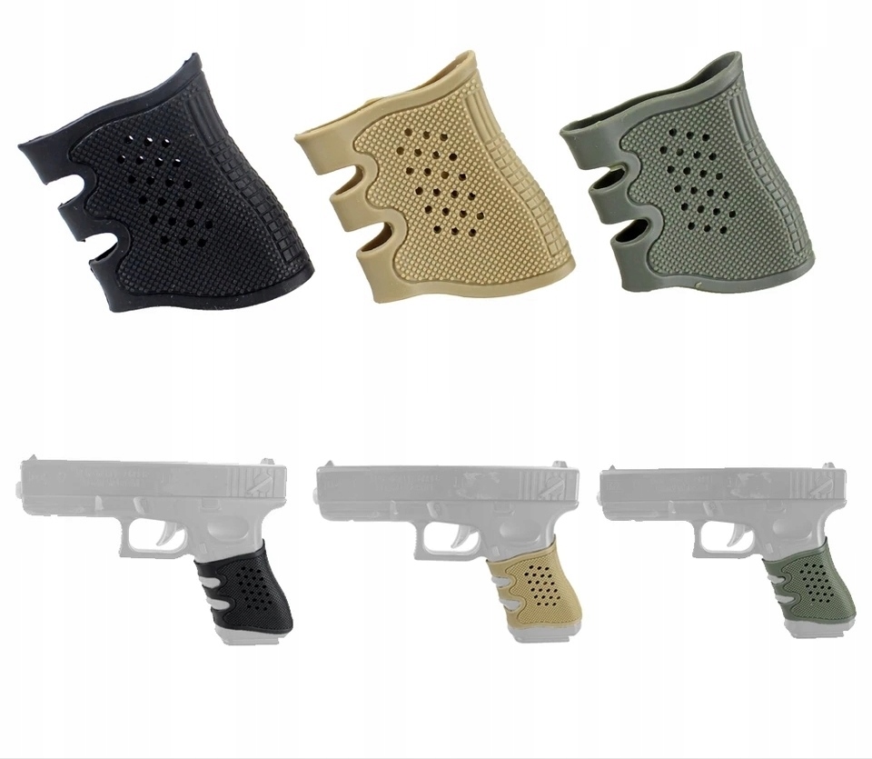 Ви хочете покращити зчеплення зі зброєю та переконатися, що вона надійно та добре лежить у ваших руках. Щоб він не вислизнув з ваших рукавичок або спітнілих рук, придбайте гумовий чохол для пістолета. Підходить до пістолетів Glock G17 G19 G20 G21 G22 G23 G25 G31 G32 G34 G37.