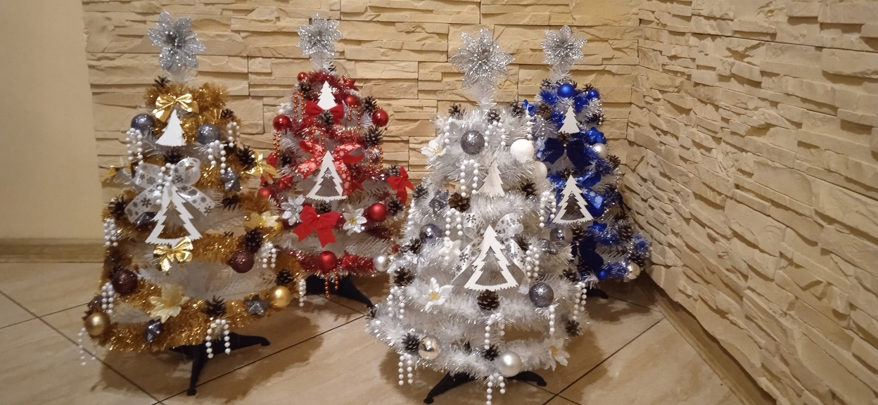 Загальний колір ялинок, який може відрізнятися від зображених на фото (зверніть увагу! що це ручна, художня робота, а не машинна! Ви отримаєте ялинку не таку, як на фото, а дуже схожу!). Як правило, ми зберігаємо кольори ялинки, наприклад, сріблястий і червоний.