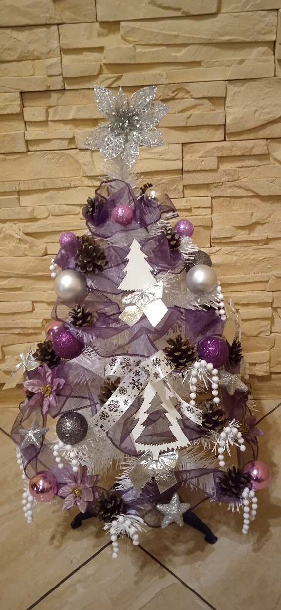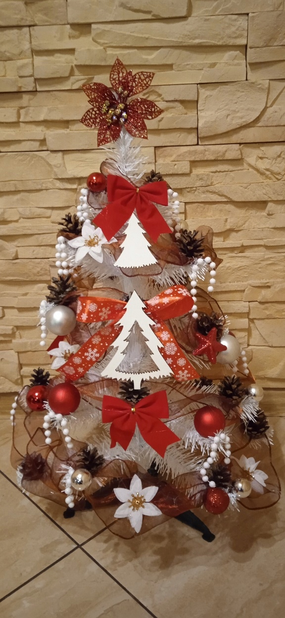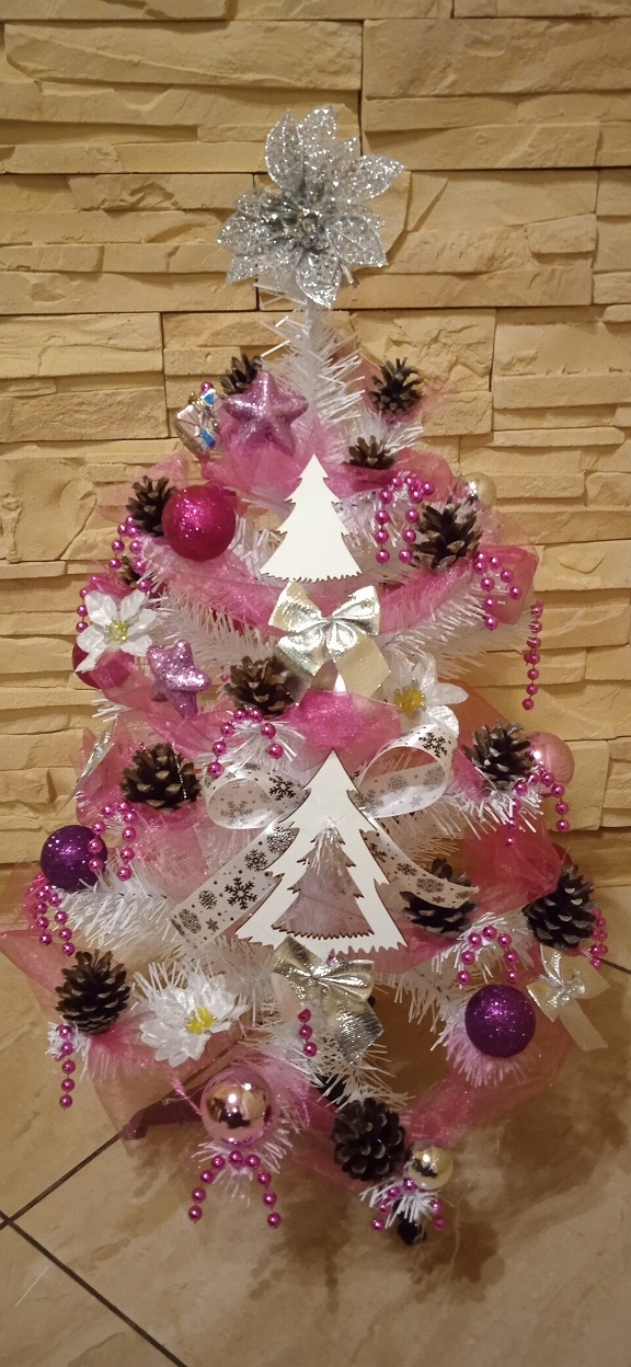 CHOINKA GOTOWA z dekoracją ubrana 100 cm BIAŁA