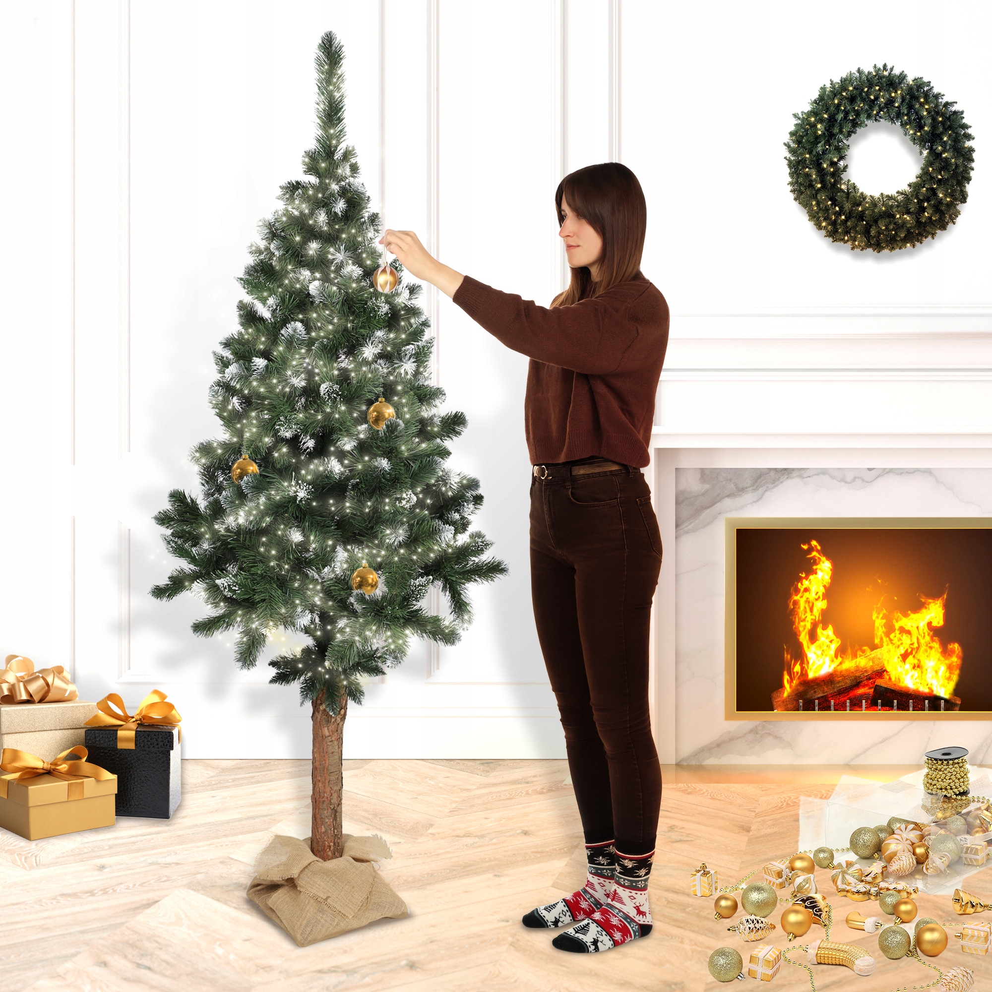 Оскільки він щільний і вкритий мерехтливими кристалами, він не потребує багато прикрас. Він чудово підкреслить різдвяну атмосферу, а запах натурального стовбура дерева викличе в пам'яті живі дерева прямо з лісу! Вам буде важко ігнорувати її!