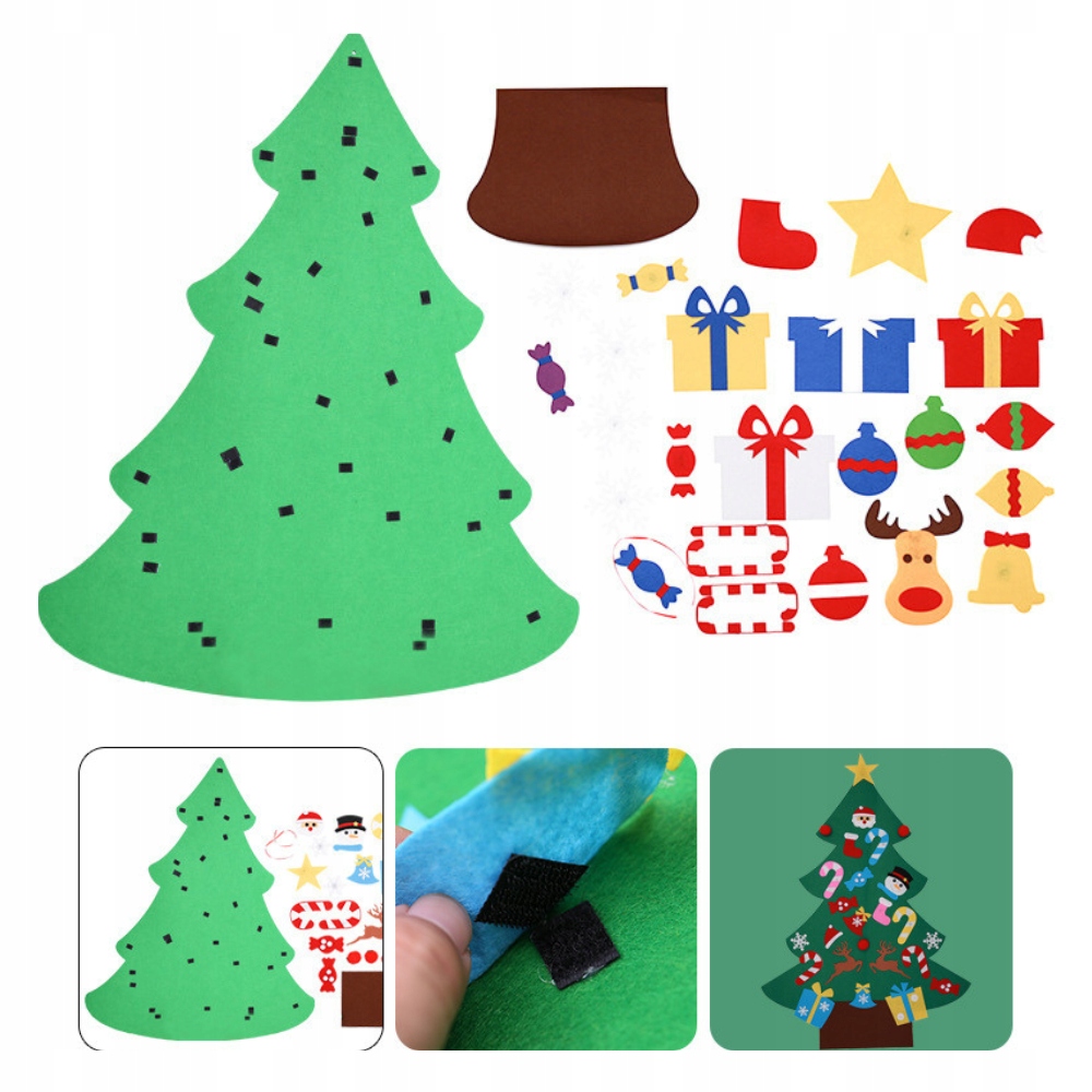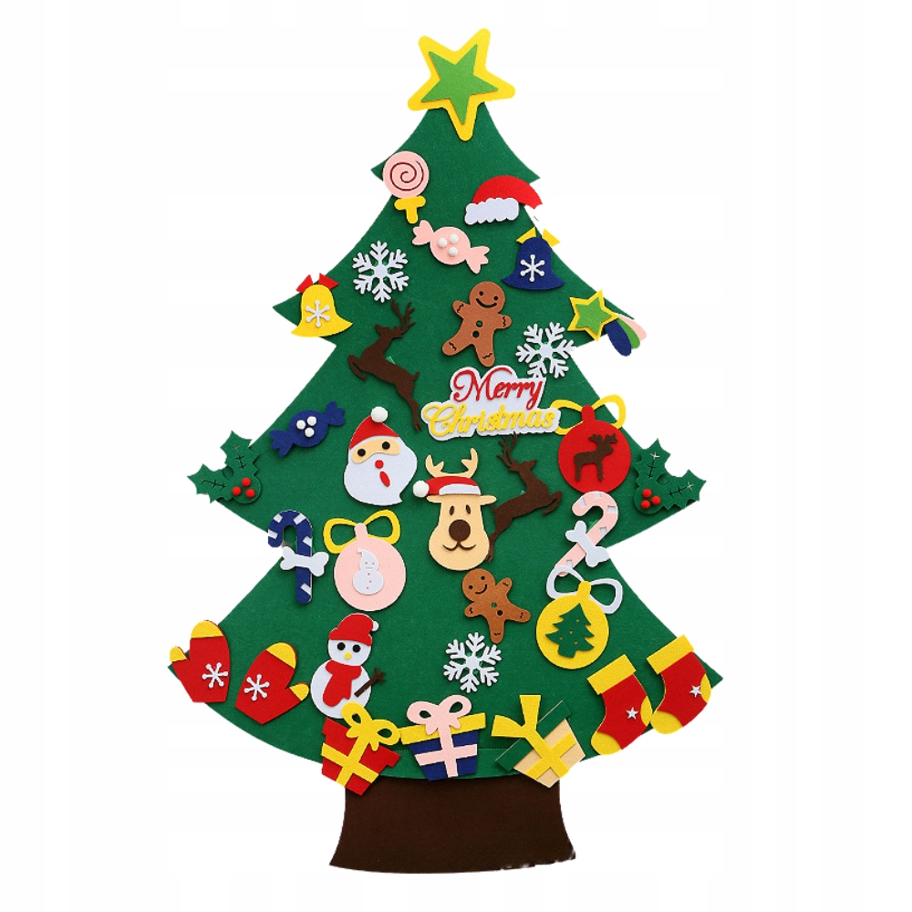 CHOINKA Z FILCU Z OZDOBAMI NA BOŻE NARODZENIE 32 SZT RZEPY DLA DZIECI + LED