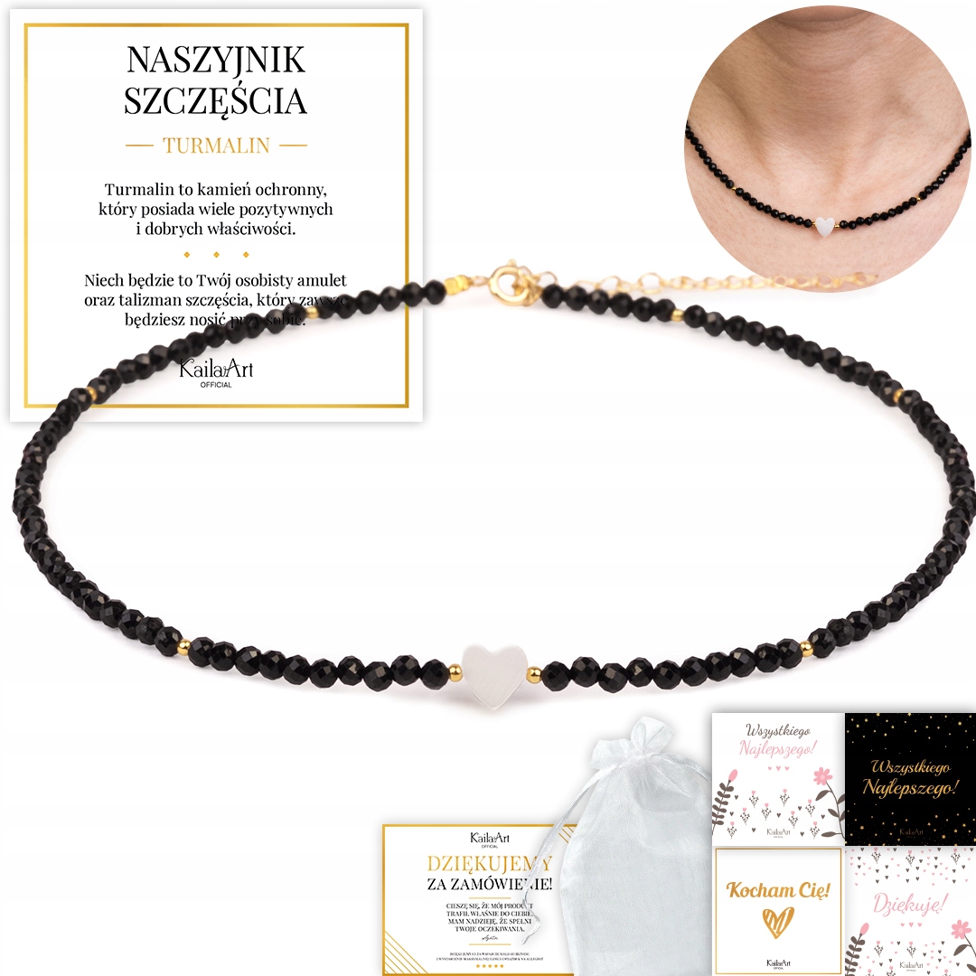 ЧОКЕР З ТУРМАЛІНОМ СЕРЦЕ З ПЕРЛІВ НАМИСТО ЧОРНИЙ ТУРМАЛІН ЗІ СТАЛІ 316Л