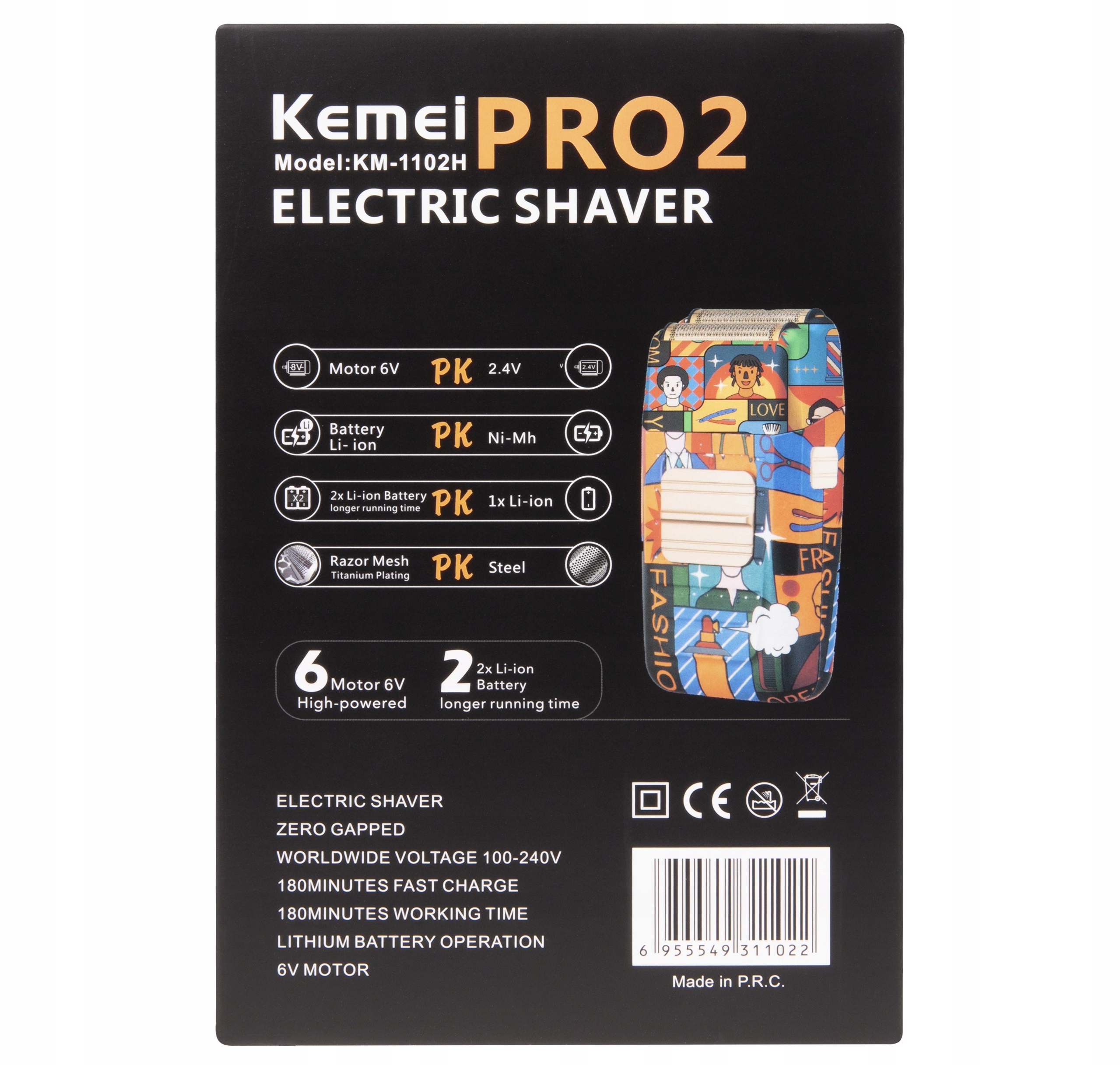 Пропозиція поширюється на бритву KEMEI PRO2, модель KM1102H, набір бритви також доступний у нашій пропозиції*